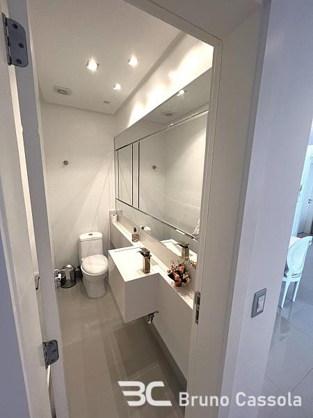 Amplo living integrado - Cozinha Americana - Moveis planejados de Alta qualidade - Pedras Siletone, quartzo estrelar, revestimentos no tom branco calacatto - Lavabo - Porcelanato 80x80 - Portas laqueadas com vedação acustica - Rebaixamento de gesso em todo apartamento - Climatização em todo apartamento - Andar alto com vista definida e agradável. - Janelas com persianas automatizadas (controle remoto).
