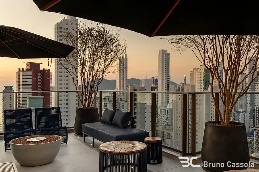 Apartamento de alto padrão, novo, com 138 m² privativos, 4 suítes, amplo living integrado com sala de estar, sala de jantar, espaço gourmet com churrasqueira a carvão e cozinha americana, sistema de sacadas Balcon Juliet Glass, privilegiando vista, iluminação e ventilação natural, 3 vagas de garagem individuais + 1 vaga para moto.
