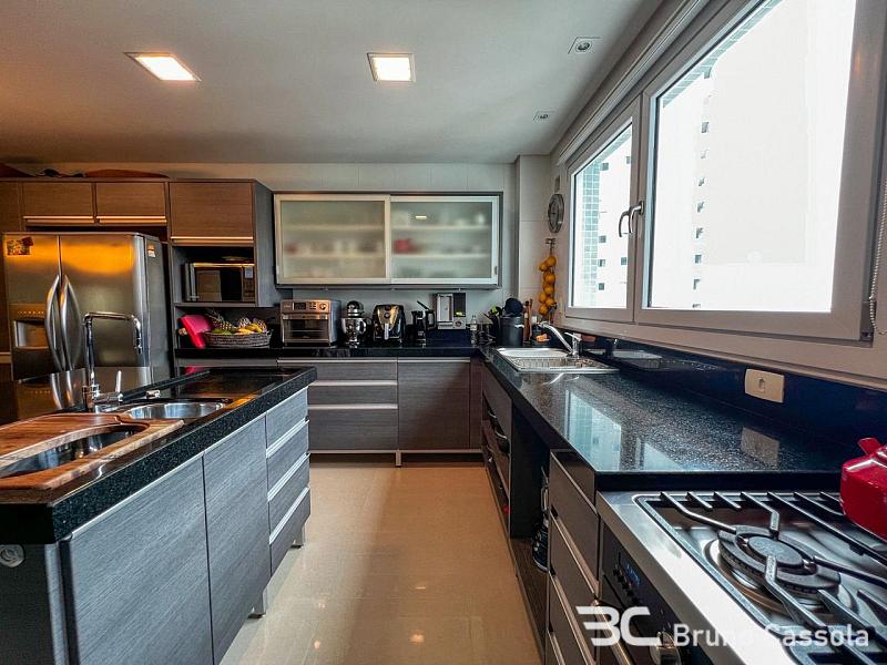 Apartamento com 217m² de área privativa, 03 amplas suítes, 02 vagas de garagem, sacada com , churrasqueira a carvão, andar alto com vista para o mar. Imóvel mobiliado e decorado, com planta bem distribuída. Área de lazer completa, totalmente equipada e decorada.