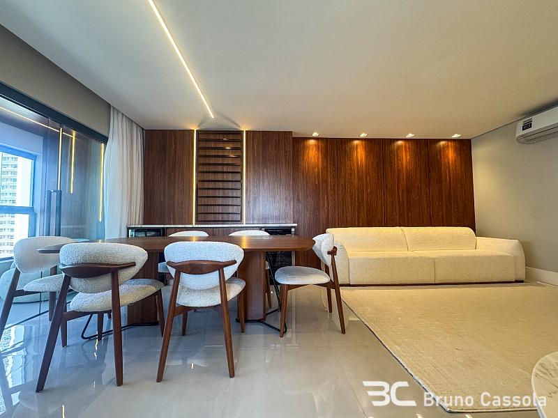 Apartamento de alto padrão no Argos Residence, prédio recente (entregue em 2021), localizado entre o Centro e a Barra Sul — uma das regiões mais valorizadas de Balneário Camboriú. Imóvel decorado, vista livre, andar alto e a poucos passos do Bruder e do Passeio San Miguel.