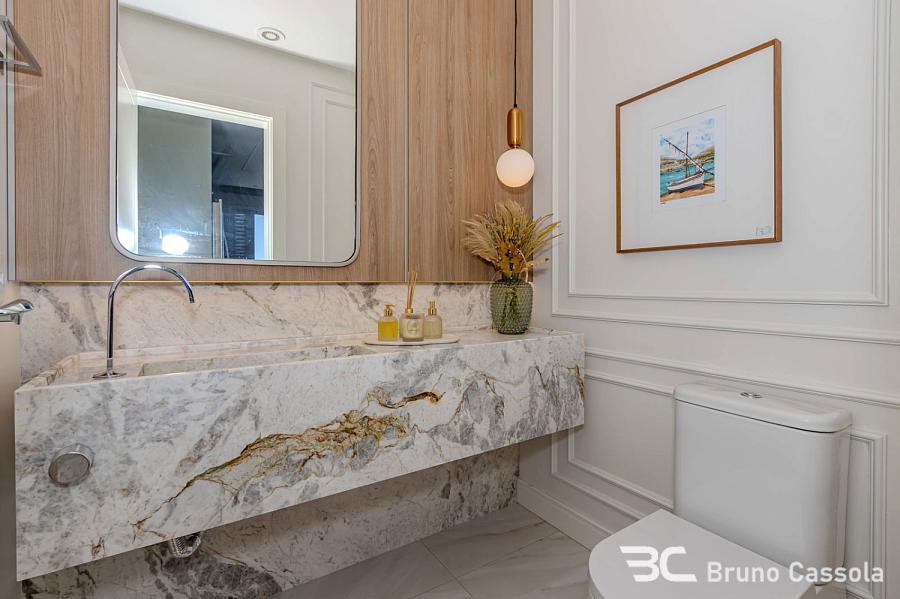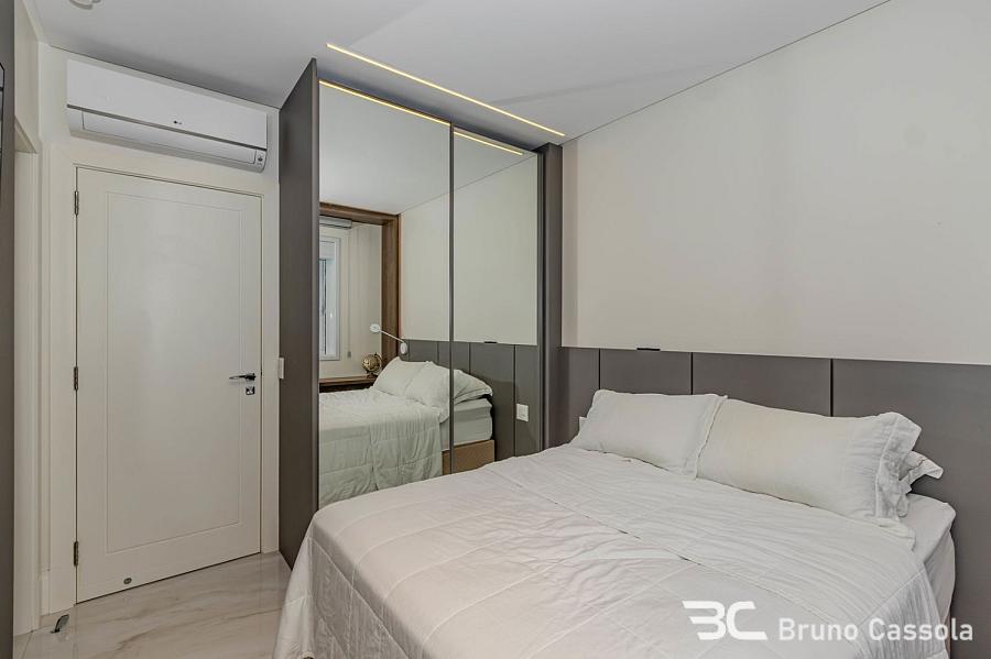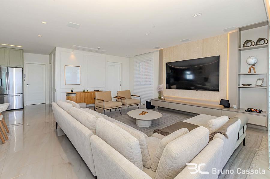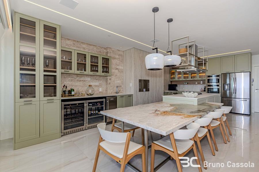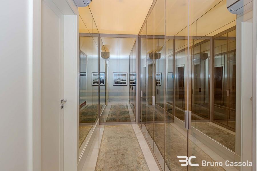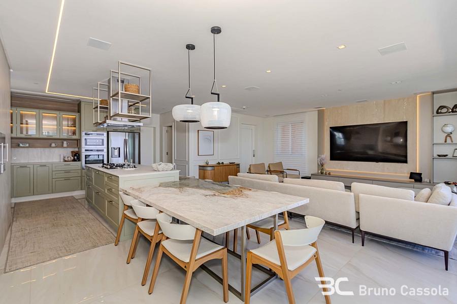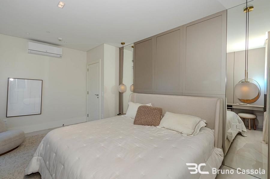 Apartamento à venda no Edifício Aurora, localizado na Barra Sul em Balneário Camboriú, Santa Catarina. O imóvel está situado em andar alto, possui vista frontal para o mar e apresenta o padrão construtivo da Embraed. A unidade conta com cinco suítes e é entregue totalmente mobiliada e decorada. A planta interna integra os ambientes sociais com a sacada, que é equipada com churrasqueira a carvão e oferece visão panorâmica da orla. O apartamento dispõe de vagas de garagem com amplas dimensões para manobra e armazenamento. O edifício oferece infraestrutura de lazer completa sob o conceito de home resort, incluindo piscinas, academias e espaços de convivência. A localização estratégica na Barra Sul garante acesso direto às principais vias de saída da cidade e proximidade com a infraestrutura náutica e comercial da região.