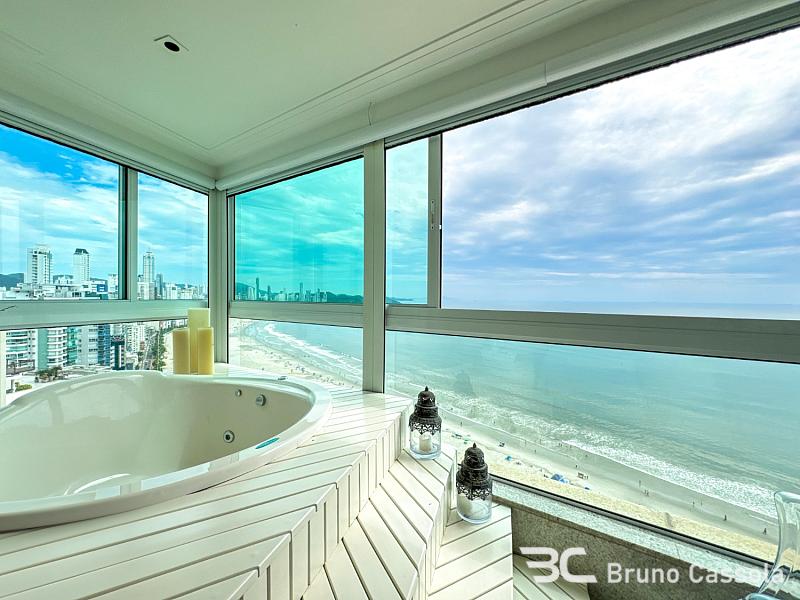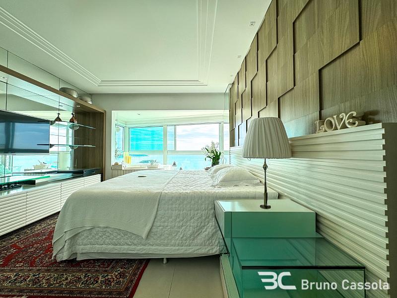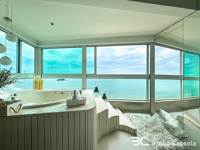 Apartamento FRENTE MAR à venda no Edifício Barramares em Balneário Camboriú, com 208 m² privativos e 4 suítes, sendo uma master frente mar, com closet e hidromassagem. Amplo living integrado com espaço gourmet e churrasqueira a carvão, área de serviço completa, com despensa e dependência, além de 4 vagas de garagem.