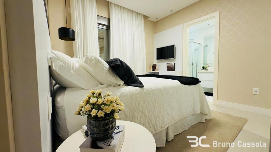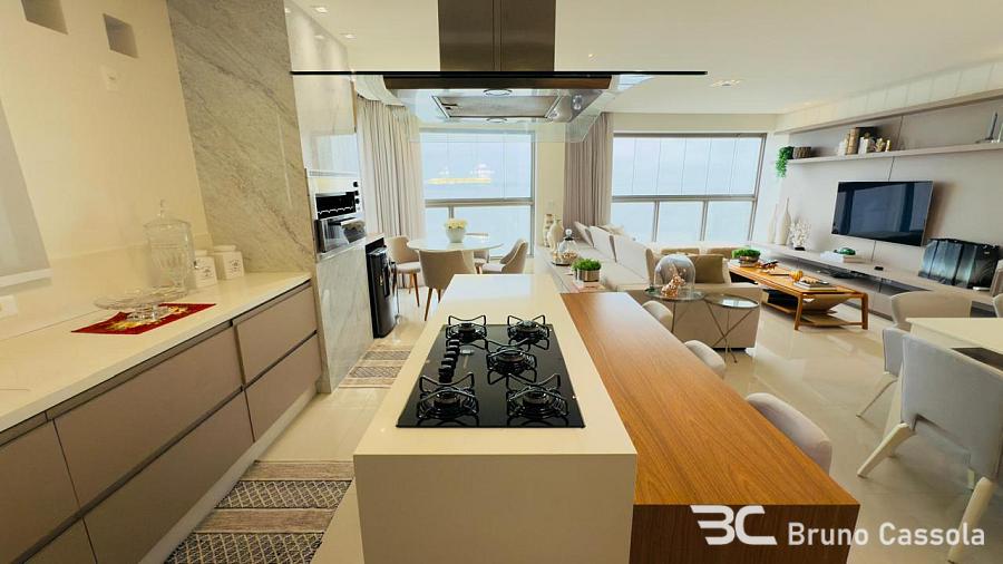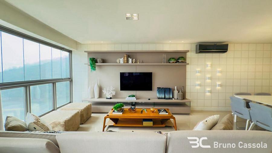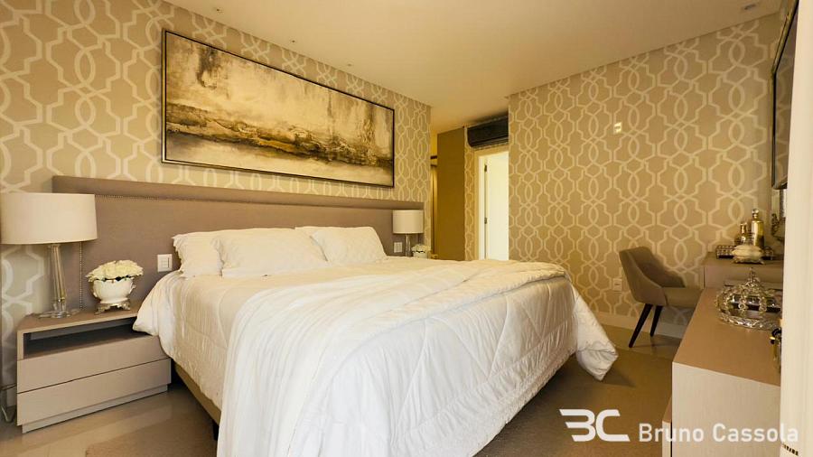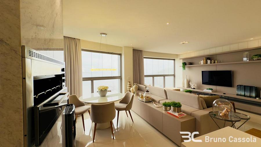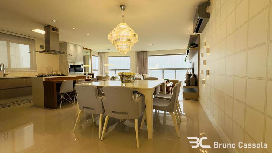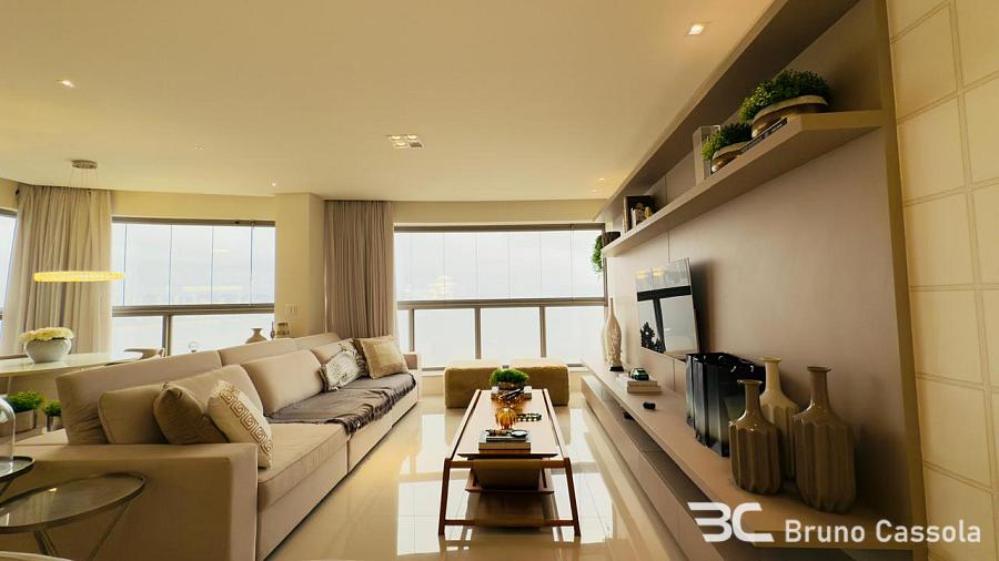 Este apartamento no Edifício Baturité Lounge House, localizado na Barra Sul em Balneário Camboriú, apresenta o padrão construtivo da Embraed em um andar alto com vista panorâmica definitiva para o mar. A unidade possui quatro suítes e ambientes integrados que contemplam uma sacada com churrasqueira a carvão. O imóvel é comercializado totalmente mobiliado, equipado e decorado, seguindo um projeto de interiores de alto padrão.