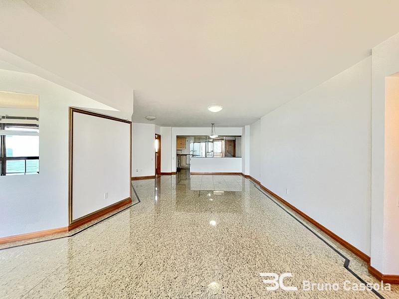 O imóvel possui living amplo para 3 ambientes integrados, com sala de estar, sala de jantar e sala de TV, além de cozinha e área de serviço com dependência completa. A sacada aberta com churrasqueira é ideal para aproveitar momentos de lazer com uma vista panorâmica para o mar.