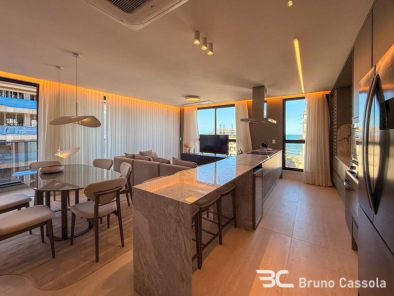 Este apartamento decorado foi planejado para oferecer conforto, integração e uma agradável vista para o mar, com ambientes bem distribuídos para o dia a dia.