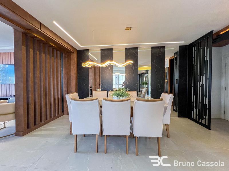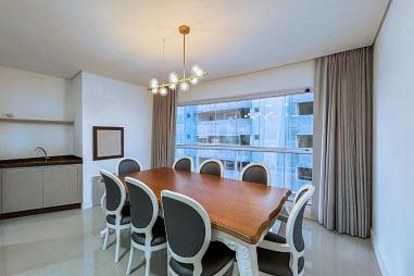 Apartamento com 143 m² de área privativa, 3 suítes, sendo uma master com closet. Possui 2 excelentes vagas de garagem. Imóvel recém-mobiliado e decorado com móveis de primeira linha. Conta com churrasqueira a gás, sacada integrada, vista panorâmica, além de excelente iluminação e ventilação cruzada.