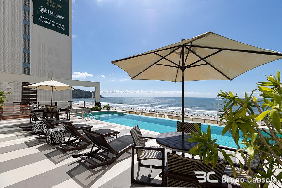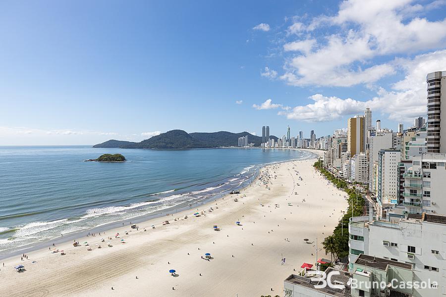 Apartamento frente mar com vista para toda a praia, 212 m² privativos, 4 suítes sendo 1 master com hidromassagem, amplo living integrado com sala de estar, jantar, cozinha americana e espaço gourmet com churrasqueira a carvão, 4 vagas de garagem.