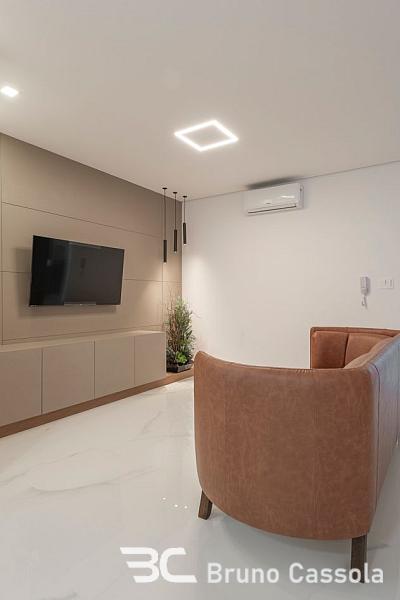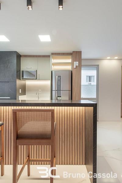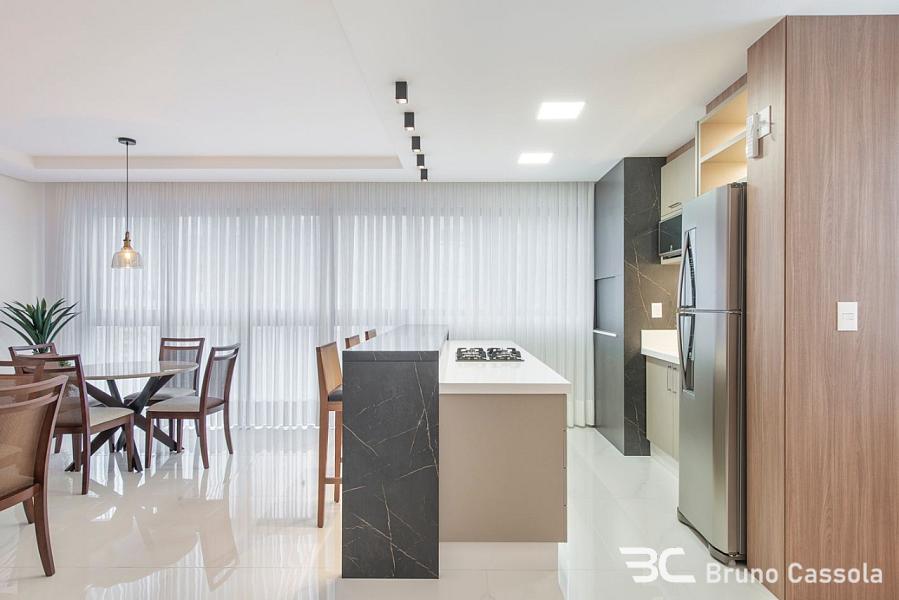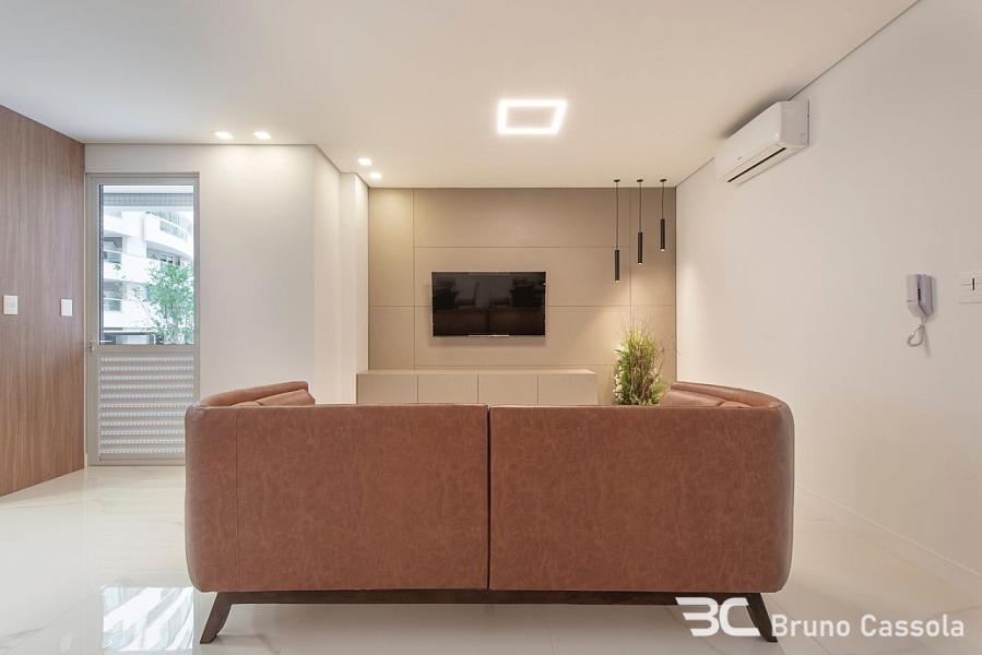 Apartamento novo, 3 suítes, 112 m² privativos, living integrado com sala de estar, jantar e espaço gourmet com churrasqueira à carvão, lavabo, área de serviço e 3 vagas de garagem. Acabamentos refinados com rebaixo de gesso e piso em porcelanato, pé direito alto e esquadrias com vidro do piso ao teto, proporcionando ótima iluminação e ventilação.