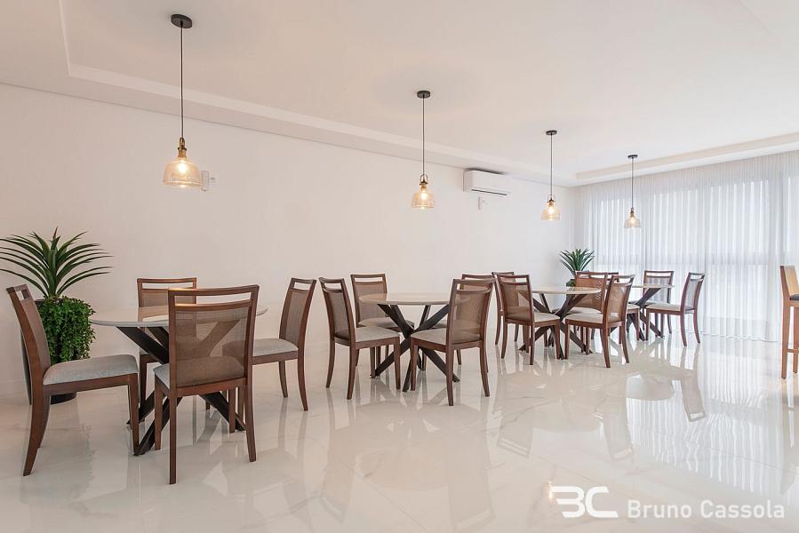 Apartamento novo, 3 suítes, mobiliado e decorado, living integrado com sala de estar, jantar, cozinha americana e espaço gourmet com churrasqueira a carvão, lavabo, área de serviço e 3 vagas de garagem.