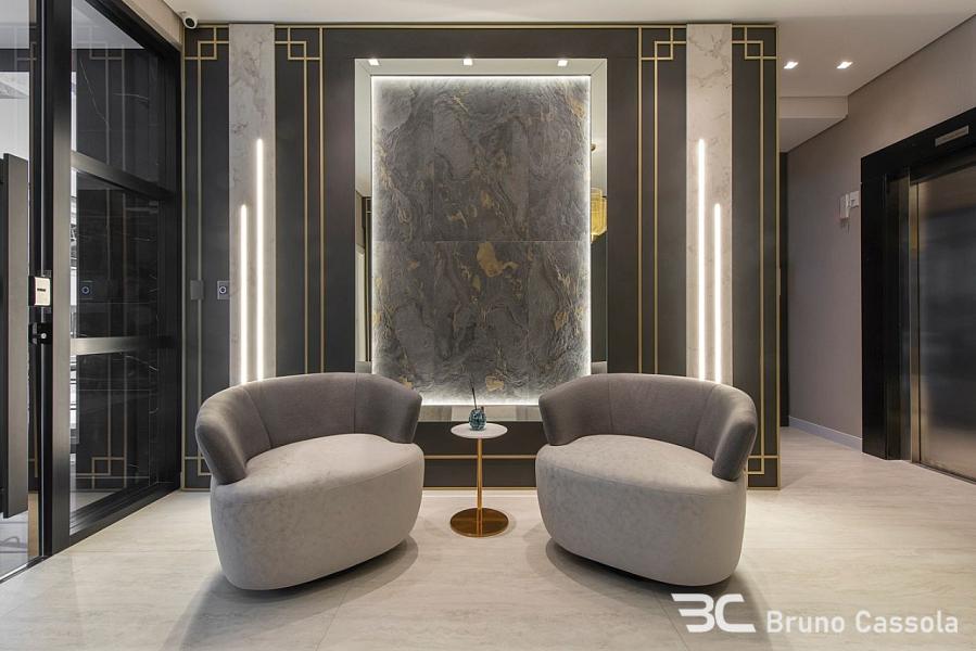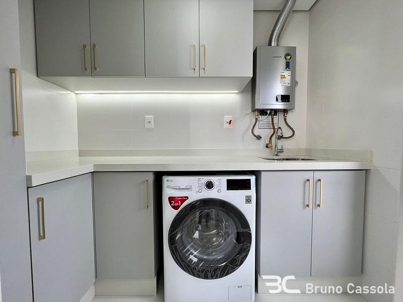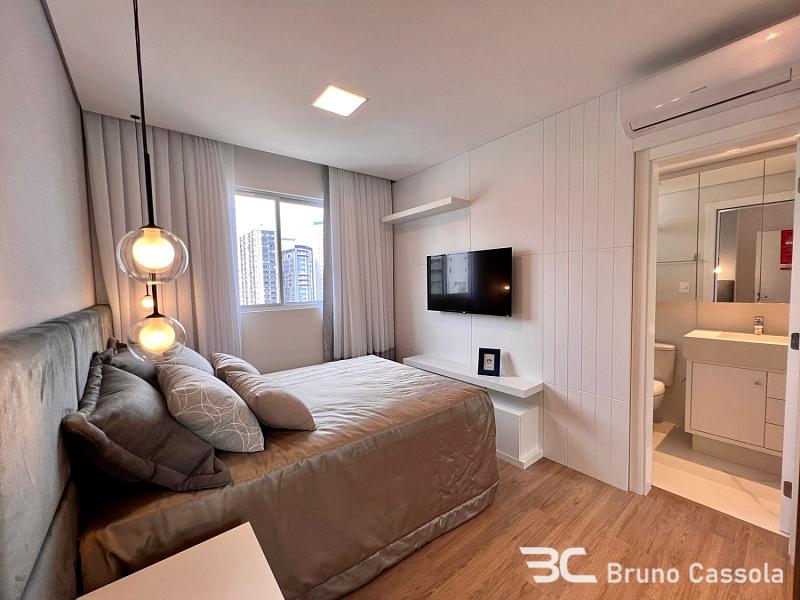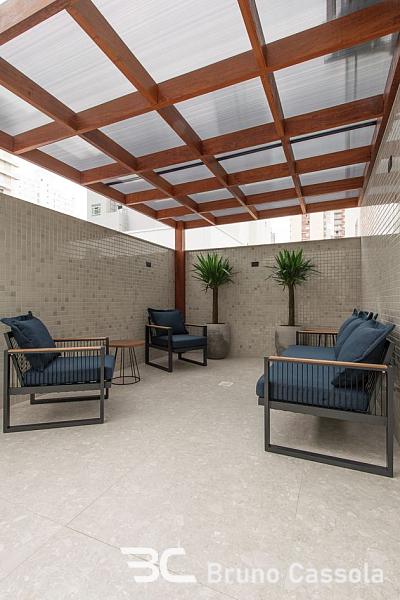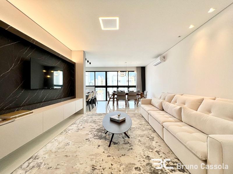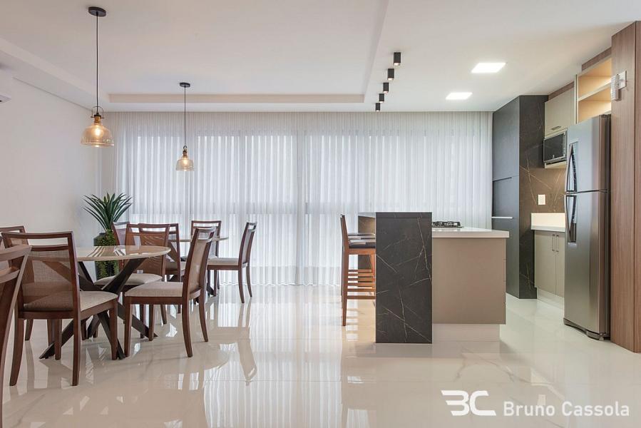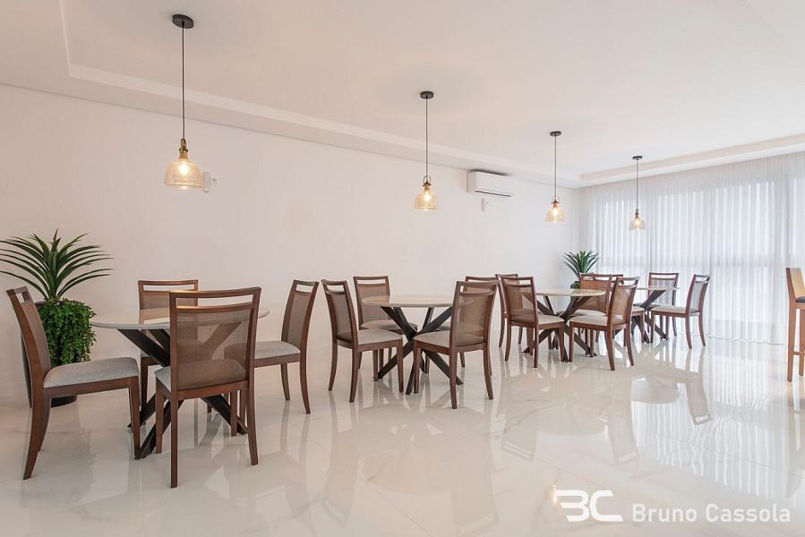 Apartamento novo, mobiliado e decorado, 3 suítes, 112 m² privativos, living integrado com sala de estar, jantar e espaço gourmet com churrasqueira à carvão, lavabo, área de serviço e 3 vagas de garagem. Acabamentos refinados com rebaixo de gesso e piso em porcelanato, pé direito alto e esquadrias com vidro do piso ao teto, proporcionando ótima iluminação e ventilação.