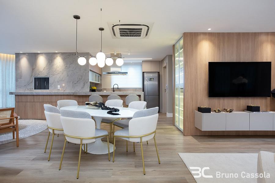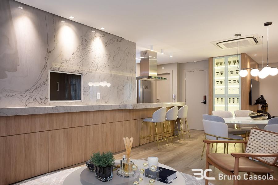 - Living integrado com espaço gourmet e churrasqueira a carvão