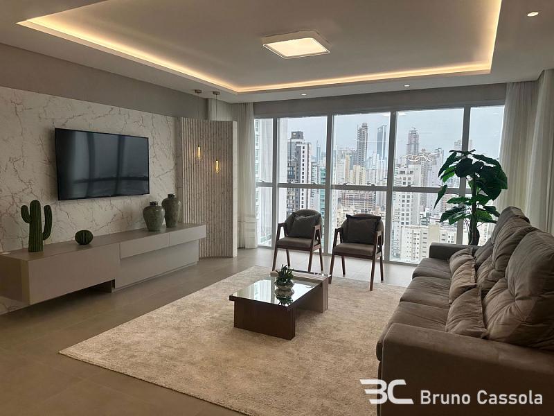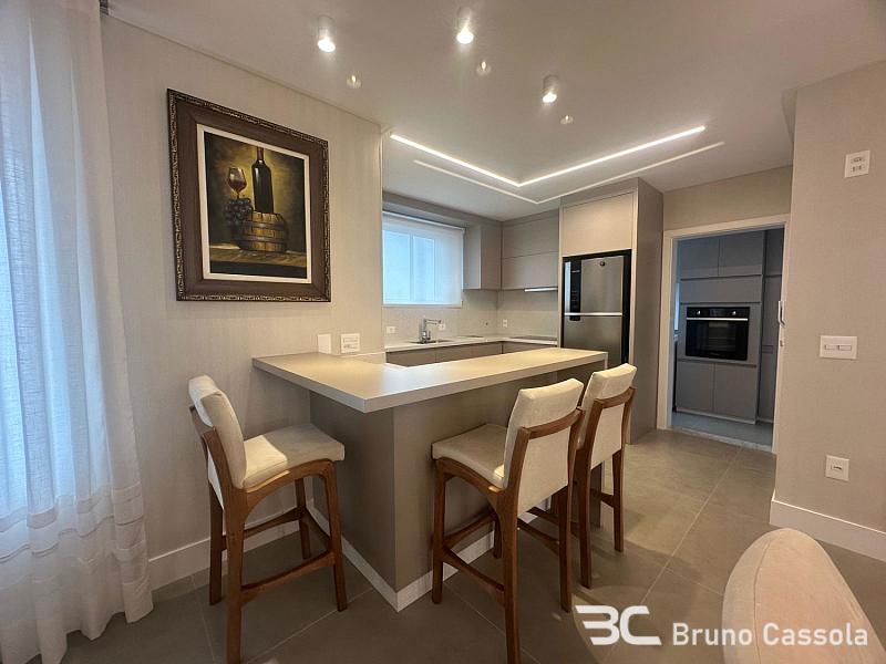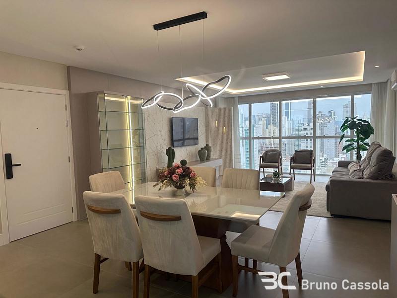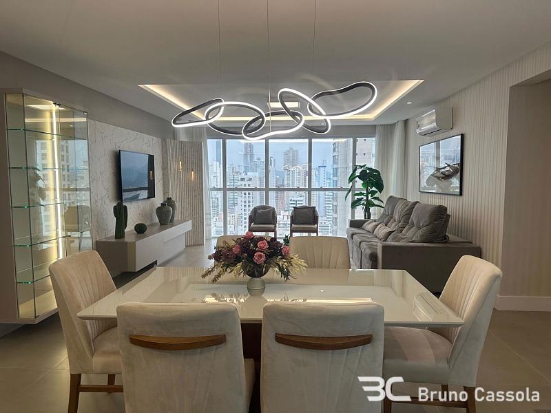 Apartamento ANDAR ALTO, muito bem mobiliado e decorado, que possuí 136m² privativos, distribuídos em 03 suítes, closet, lavado, lindo living, cozinha e área de serviço. Conta com churrasqueira para aquele churrasco de domingo em família.