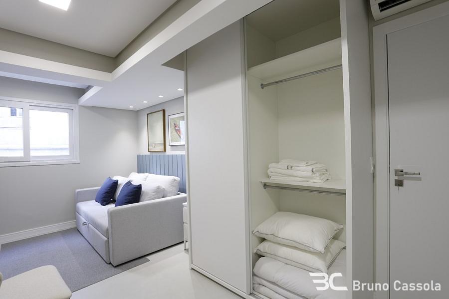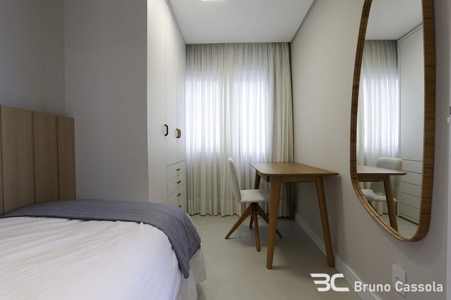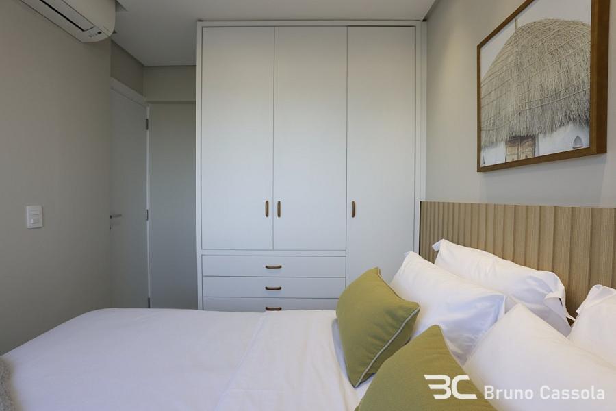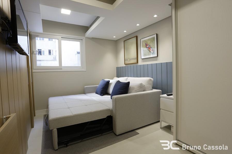 O apartamento está completamente mobiliado e dispõe de 3 dormitórios, sendo 1 suíte, um banheiro social, living integrado à cozinha, área de serviço e 2 vagas de garagem. Ademais, conta com um anexo independente: um estúdio compacto com ambientes interligados, cozinha e banheiro — perfeito para uso pessoal, recepção de hóspedes ou como uma oportunidade de investimento em locação.
