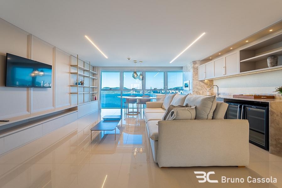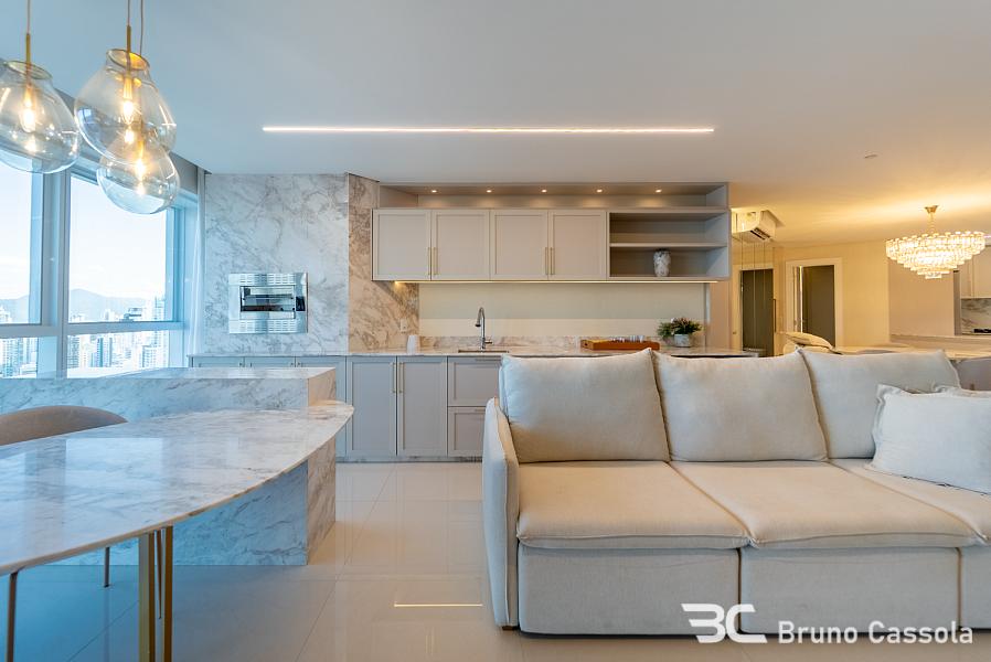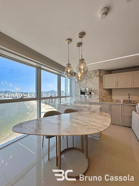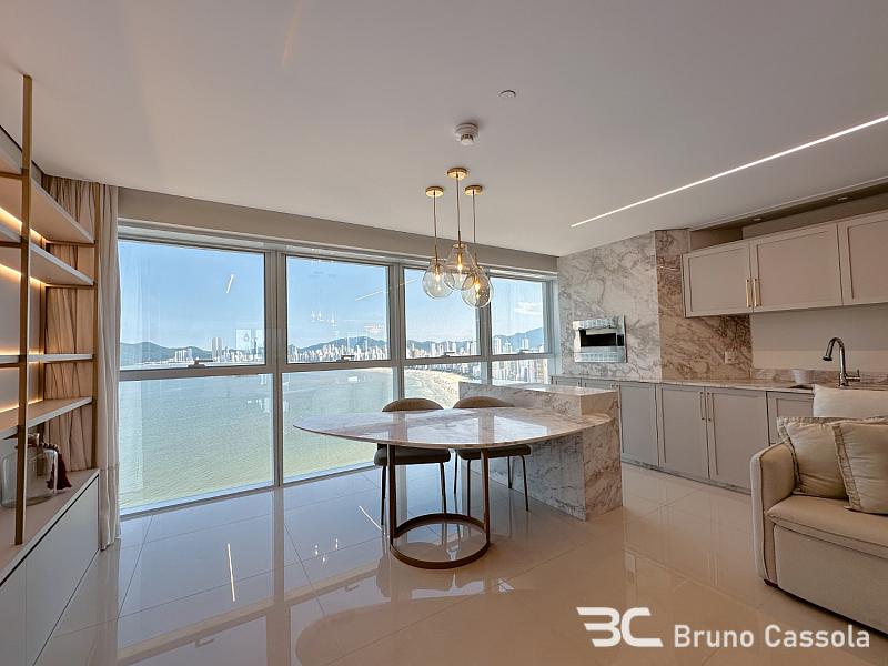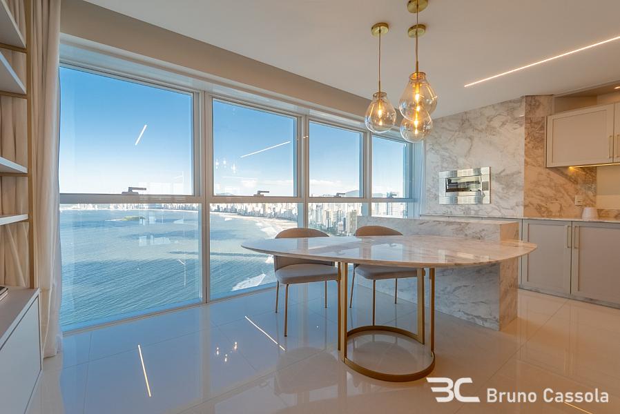 Apartamento decorado com 164 m² de área privativa, composto por 3 suítes, incluindo 1 suíte master com hidromassagem. O imóvel oferece um amplo living integrado com sala de estar, sala de jantar e espaço gourmet, todos com vista para o mar. Cozinha equipada e 3 vagas de garagem. A arquitetura do empreendimento, com sua fachada em formato de asa delta e revestida inteiramente em pele de vidro, proporciona uma vista "infinita" para o horizonte e o mar. Localizado em uma área nobre na Barra Norte de Balneário Camboriú.