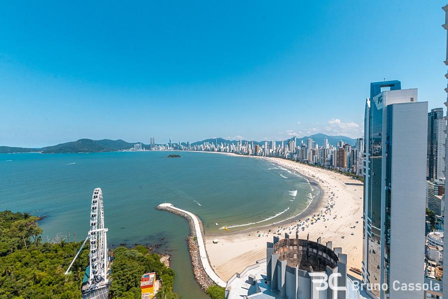 Apartamento quadra mar andar alto com vista panorâmica para toda a praia e Roda Gigante à venda no Italian Residence - Barra Norte. Mobiliado e decorado, 4 suítes, em frente a Roda Gigante FG Big Wheel.