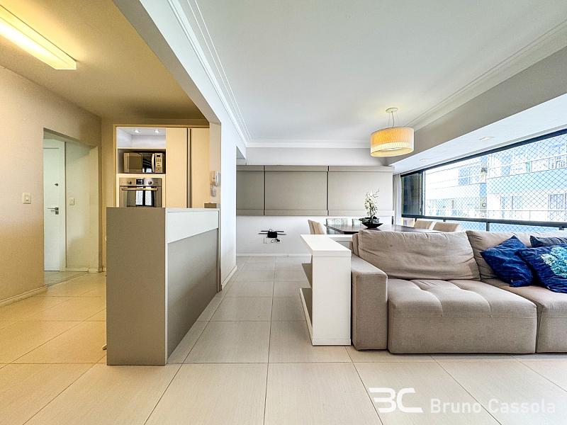 São 03 dormitórios ( 01 Suite ), 01 vaga privativa e andar alto com vista incrível do mar. A sacada integrada amplia o ambiente, ideal para relaxar ou receber amigos. Totalmente mobiliado e decorado, pronto para morar ou investir.