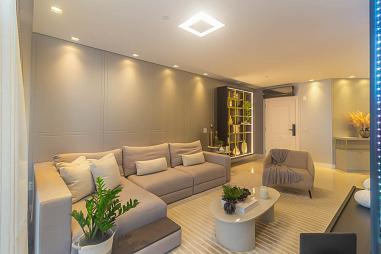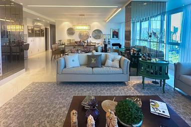 Apartamento com 210 m² privativos, 4 suítes sendo uma master com hidromassagem e closet, amplo living integrado com espaço gourmet e churrasqueira a carvão, sacada externa, 4 vagas de garagem.