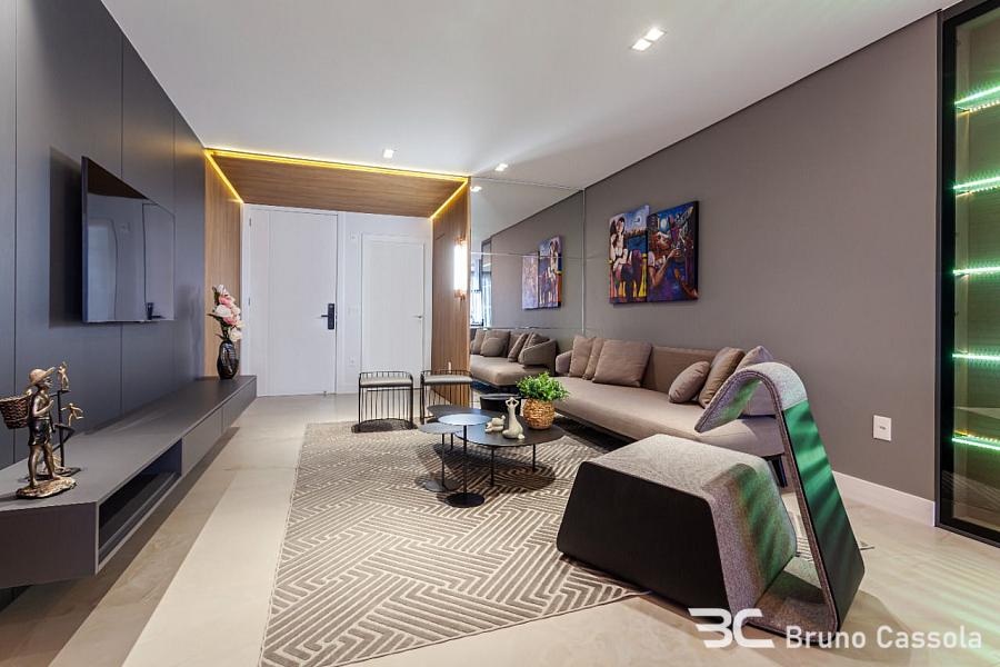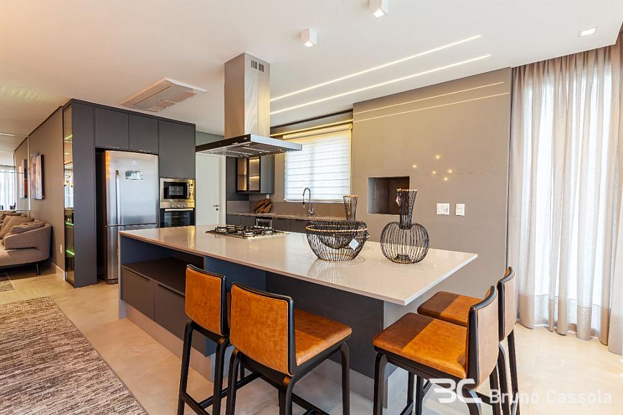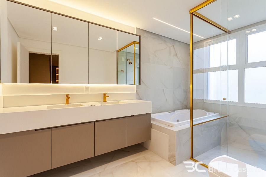 Apartamento com 210 m² privativos, 4 suítes sendo uma master com hidromassagem e closet, amplo living integrado com espaço gourmet e churrasqueira a carvão, sacada externa, 4 vagas de garagem.