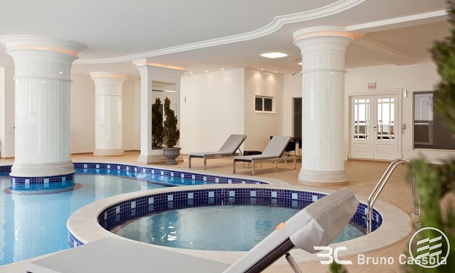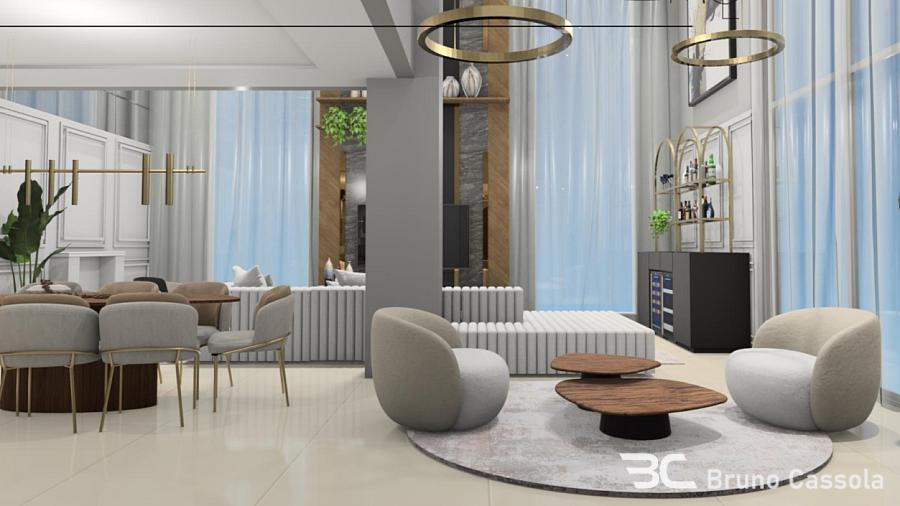 EMBRAED: Raridade | Apartamento com pé direito duplo, 256 m² privativos, sacada externa com vista definitiva para o mar e churrasqueira a carvão, amplo living integrado com pé direito duplo e mezanino, 3 suítes sendo 1 master, 3 vagas de garagem.