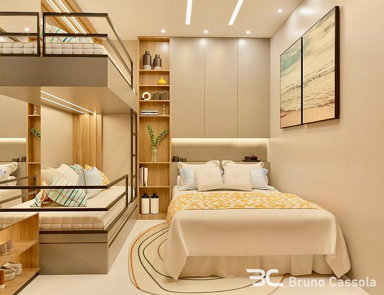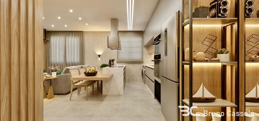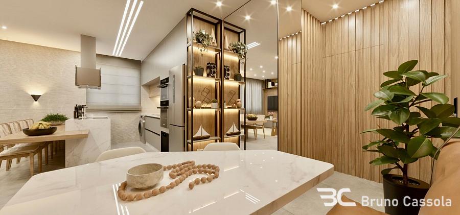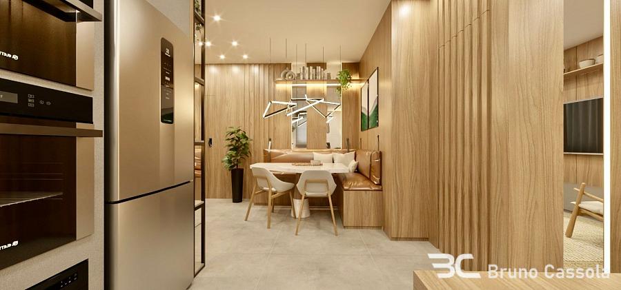 Com uma planta bem distribuída, o apartamento conta com 2 banheiros, sala de estar e jantar integradas, cozinha equipada, área de serviço e 2 vagas de garagem.