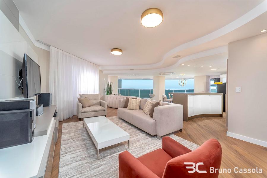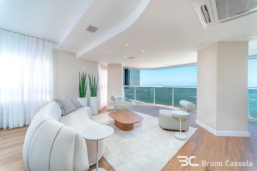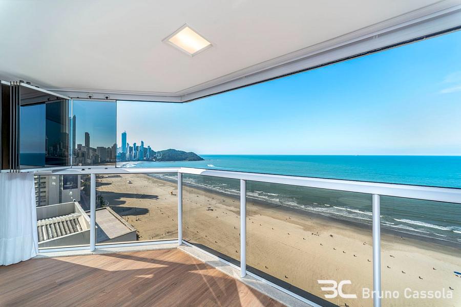 Apartamento no Edifício Maria Eduarda, no centro de Balneário Camboriú. Com vista panorâmica para o mar, este imóvel em andar alto foi completamente reformado, mobiliado e decorado.