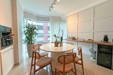 Apartamento com 178m² de área privativa, distribuídos em 04 suítes, sacada integrada, 02 vagas de garagem. Imóvel mobiliado e decorado, localizado na quadra mar, a poucos passos da praia. Exclusividade de um apartamento por andar, oferecendo mais privacidade e conforto.