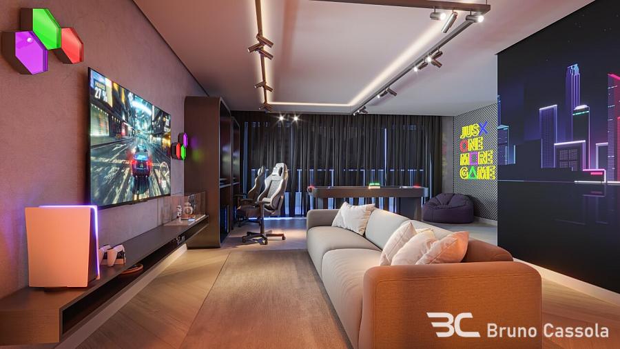 Infraestrutura de lazer completa, com ambientes decorados e equipados, incluindo um rooftop panorâmico com vista para toda a praia.