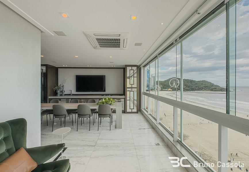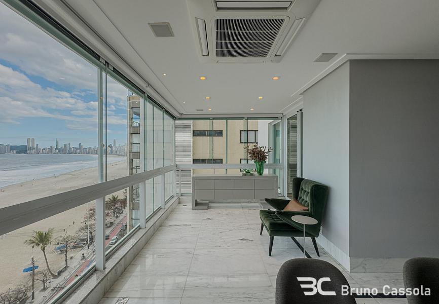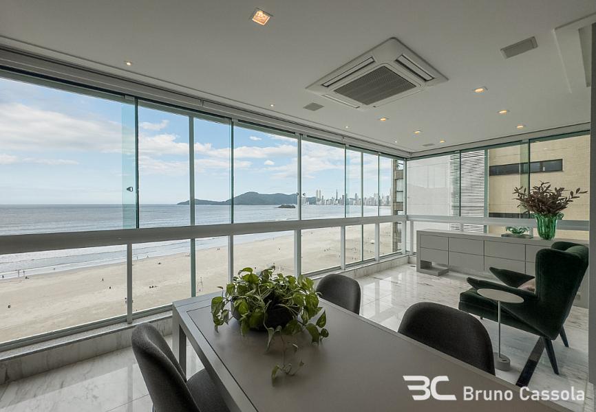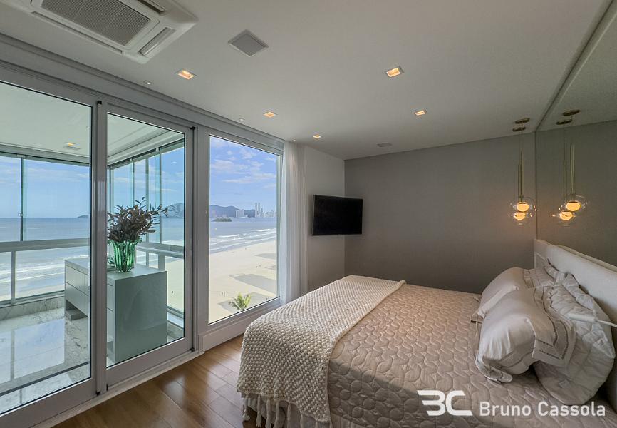 Apartamento frente mar à venda no Ed. Metrópolis com vista panorâmica para toda a praia com closet, hidromassagem e varanda de frente para o mar, amplo living com sala de estar e jantar, sala de TV, cozinha e espaço gourmet completo, além de sacada que contempla um visual único da praia de Balneário Camboriú.