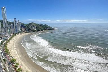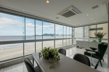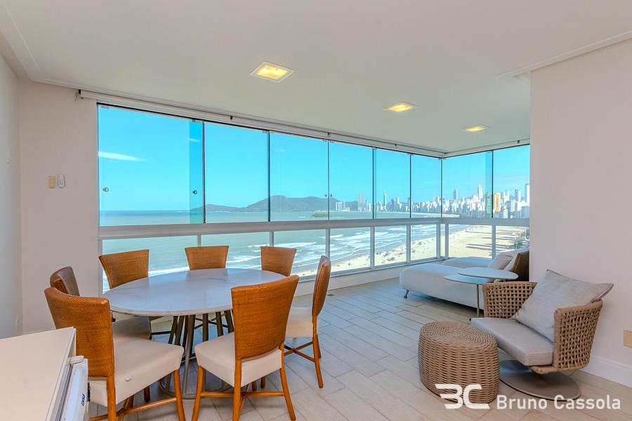 Apartamento frente mar 4 suítes, 315m² à venda no Ed. Metrópolis com vista panorâmica para toda a praia com closet, hidromassagem e varanda de frente para o mar, amplo living com sala de estar e jantar, sala de TV, cozinha e espaço gourmet completo, além de sacada que contempla um visual único da praia de Balneário Camboriú.