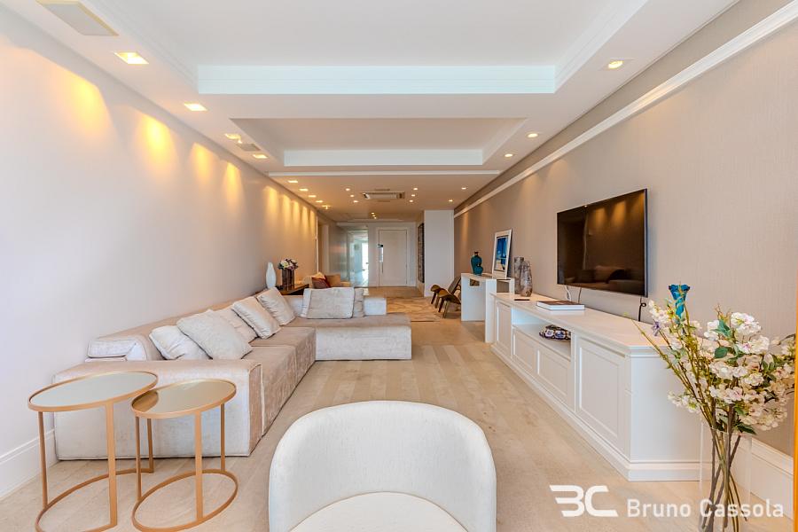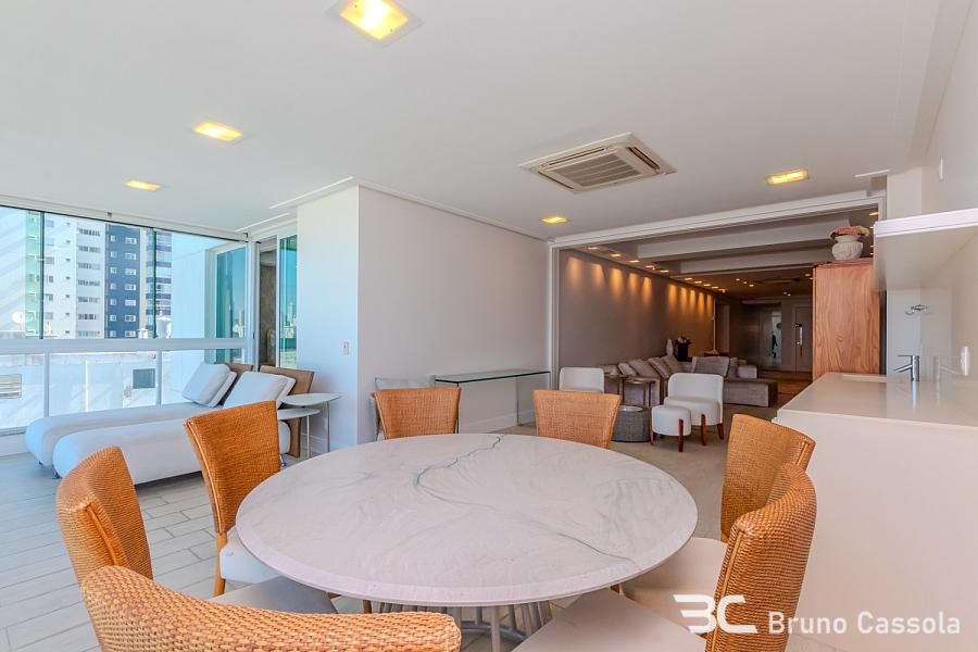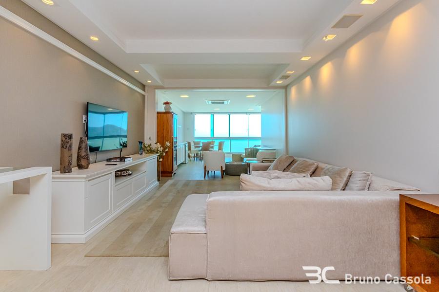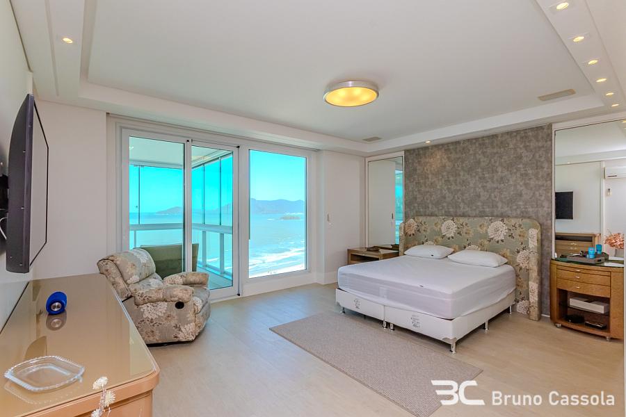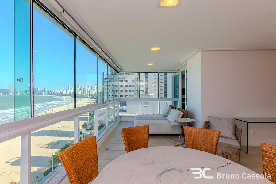Apartamento frente mar 4 suítes, 315m² à venda no Ed. Metrópolis com vista panorâmica para toda a praia com closet, hidromassagem e varanda de frente para o mar, amplo living com sala de estar e jantar, sala de TV, cozinha e espaço gourmet completo, além de sacada que contempla um visual único da praia de Balneário Camboriú.