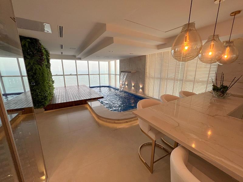 Apartamento mobiliado 4 Suítes a venda no Millennium Palace de frente para o mar em Balneário Camboriú. Esta propriedade de alto padrão possui 316 m² privativos, possui vista deslumbrante para o mar, amplo living integrado abrange sala de estar, sala de jantar e cozinha americana, proporcionando um ambiente espaçoso e convidativo. Esta é uma oportunidade única. O imóvel, finamente decorado, conta com uma piscina privativa interna com cascata e uma suíte master equipada com hidromassagem.