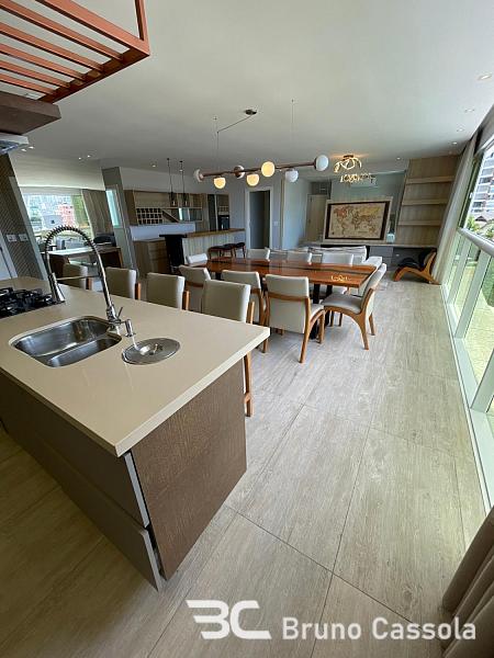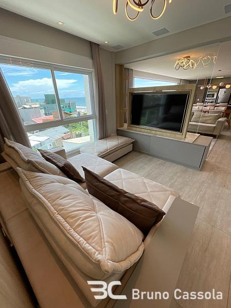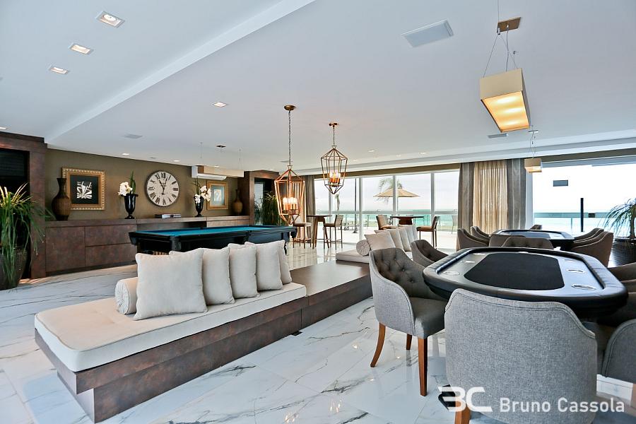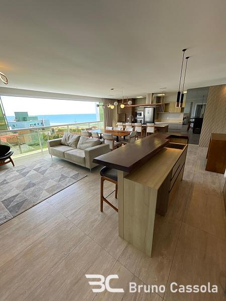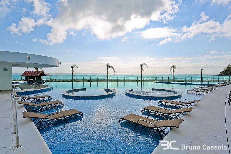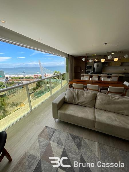 Mirage Residence: Apartamento frente mar, decorado, com 172 m² privativos, 4 suítes, living integrado personalizado com bar e adega, vista para o mar com sol face leste e norte, sala de jantar e cozinha integrada com churrasqueira a carvão, lavanderia ampla e 3 vagas de garagem individuais com depósito.
