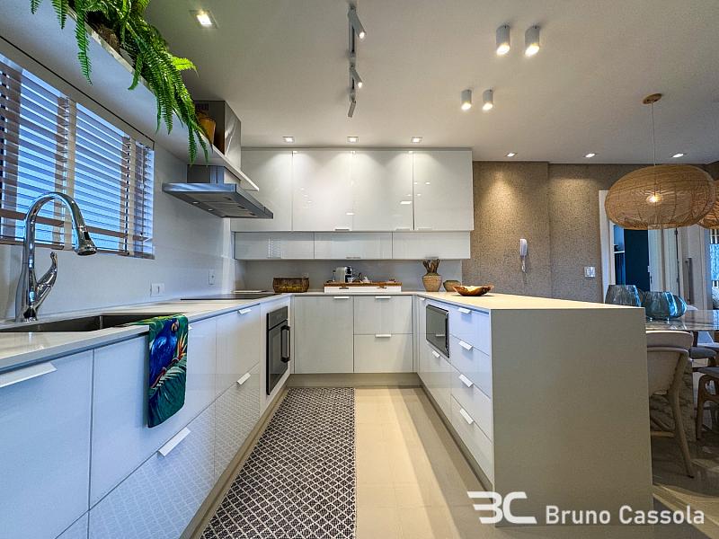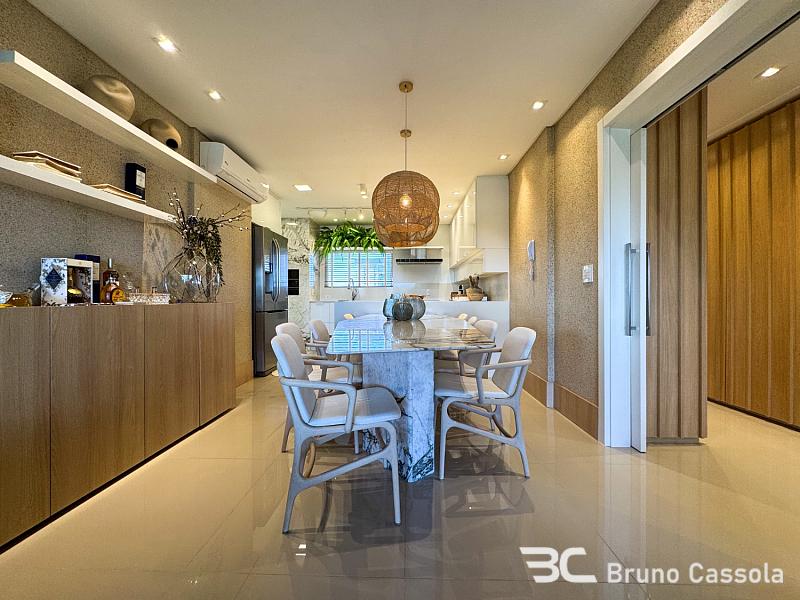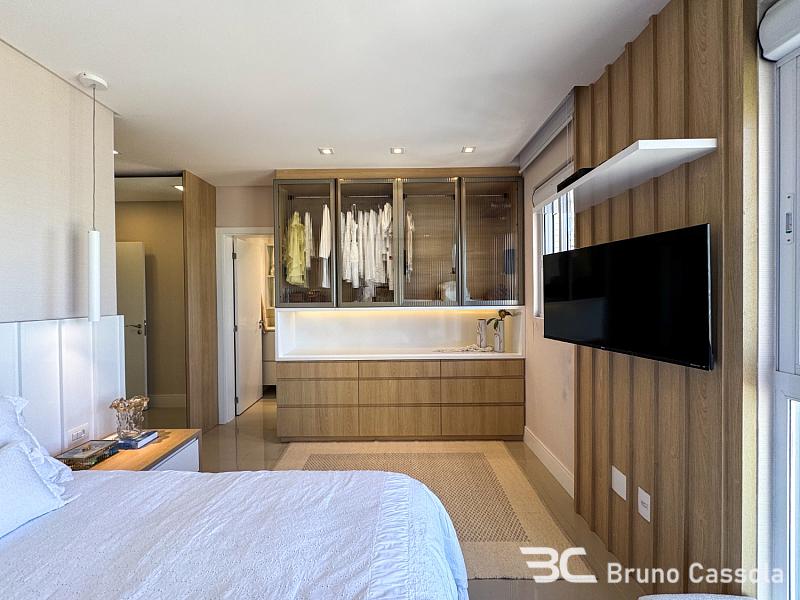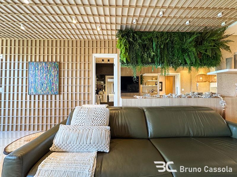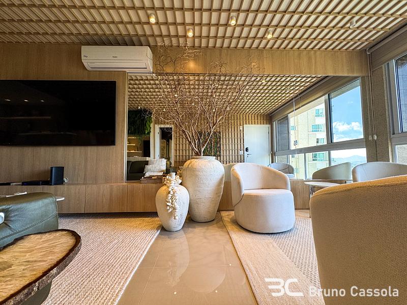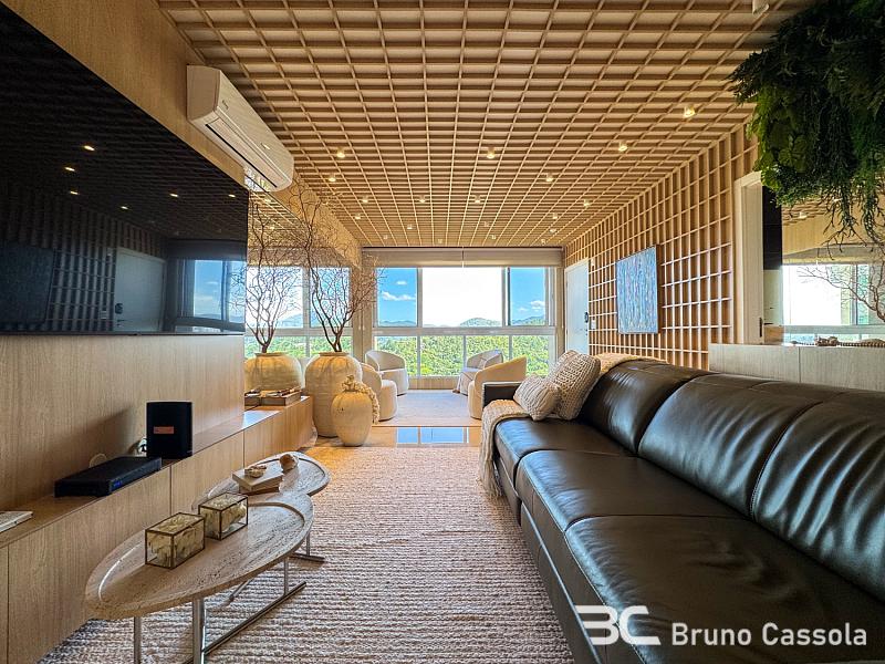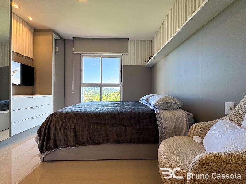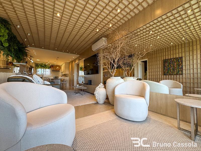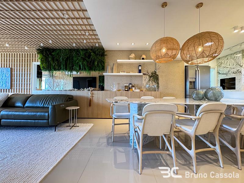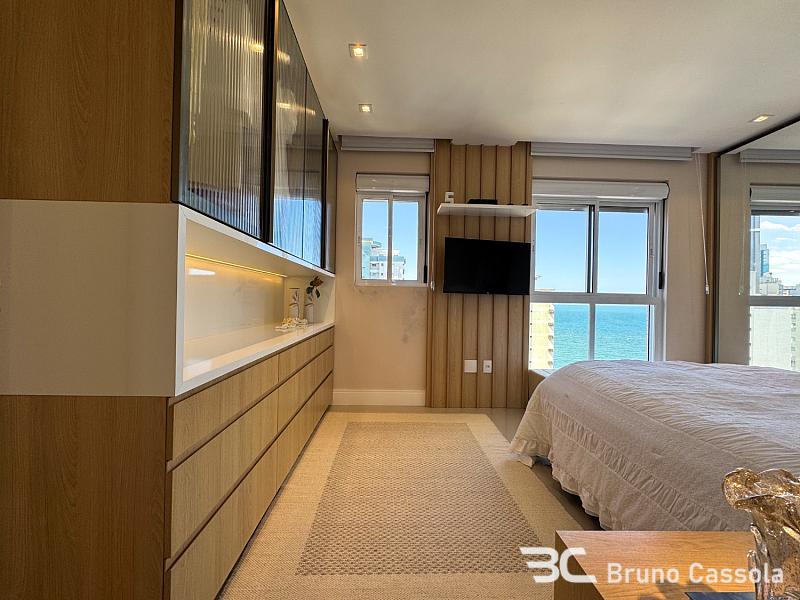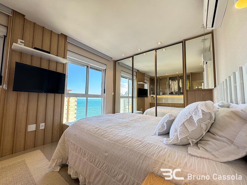 O Edifício Mirante das Águas está localizado na quadra do mar na Barra Sul, em Balneário Camboriú. O apartamento possui 151 m² de área privativa, quatro suítes, lavabo e três vagas de garagem privativas. O imóvel é finamente mobiliado e decorado, contando com acabamentos de alto padrão, living integrado com salas de estar e jantar, churrasqueira a carvão e vista para o mar.