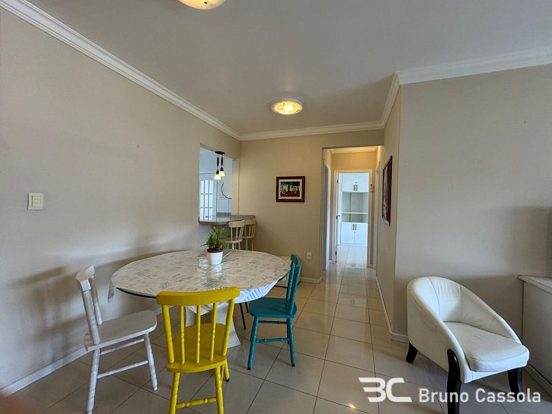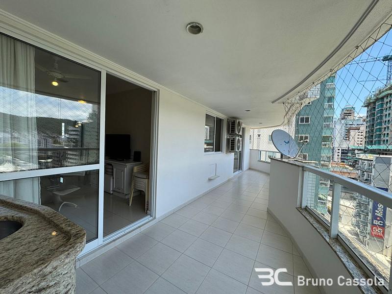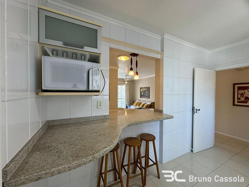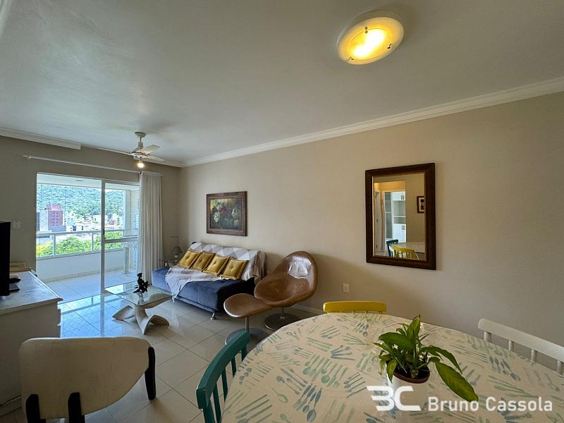 Apartamento quadra mar, mobiliado e equipado, com 95 m² privativos, 2 dormitórios sendo 1 suíte e sacada ampla com churrasqueira a carvão.