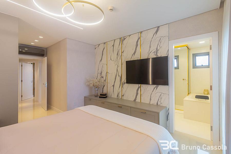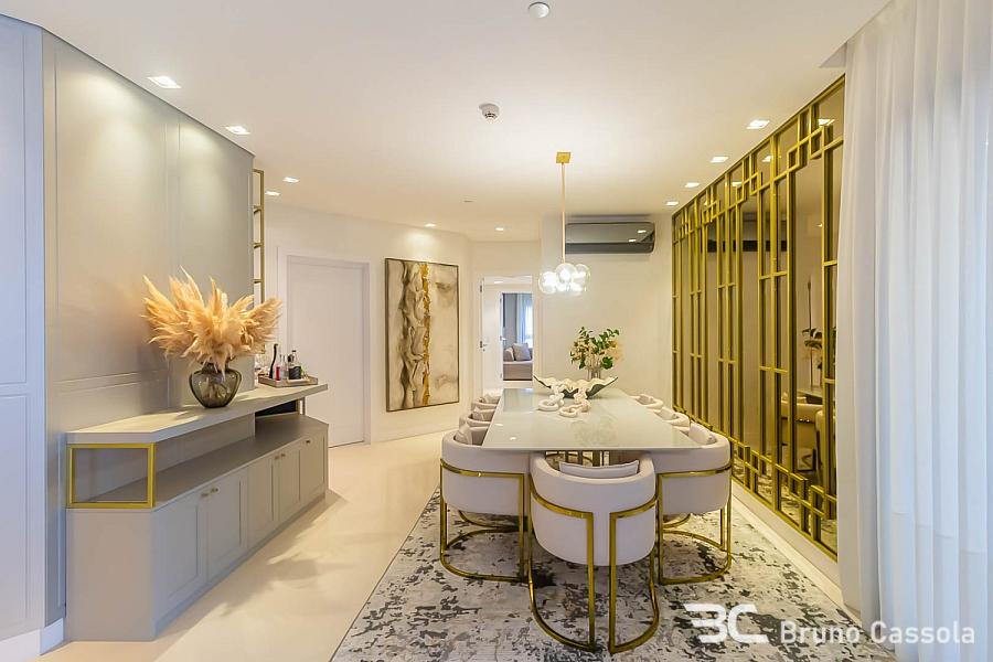 Lindo Apartamento mobiliado, equipado e decorado da Construtora Embraed no Centro de Balneário Camboriú com 182 m² de área privativa, 04 suítes sendo 01 máster com banheira de hidromassagem, living integrado com sala de estar e sala de jantar, cozinha, lavabo, sacada com churrasqueira à carvão e 03 vagas de garagem.