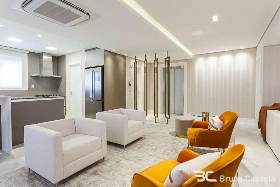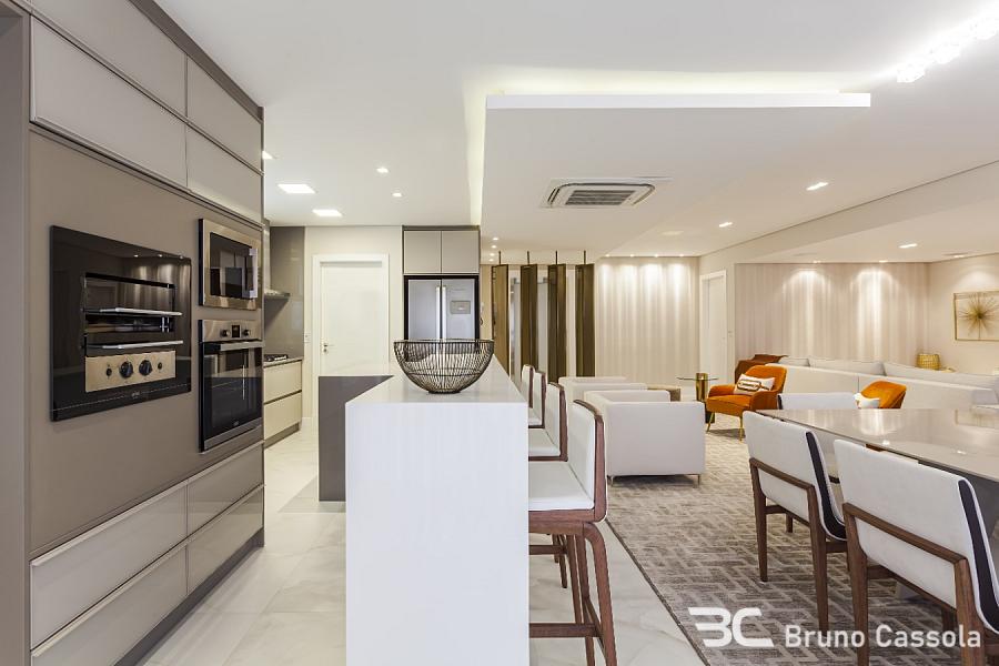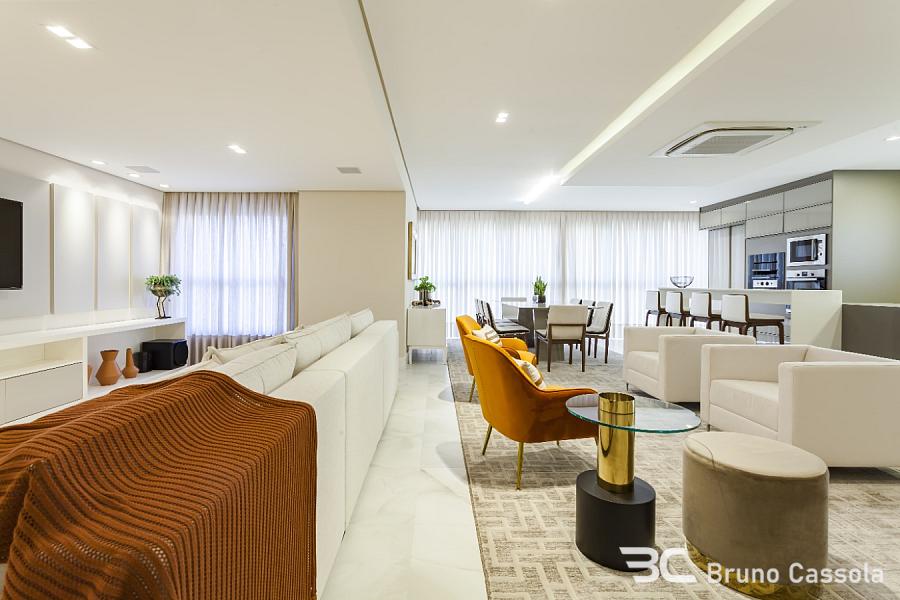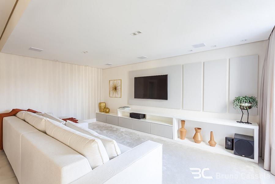Possui living integrado com hall, sala de estar e TV, sala de jantar e cozinha em conceito aberto com espaço gourmet e churrasqueira. Na área íntima, destaque para a suíte master com closet, ducha dupla e banheira de imersão. O imóvel também conta com lavabo e área de serviço.