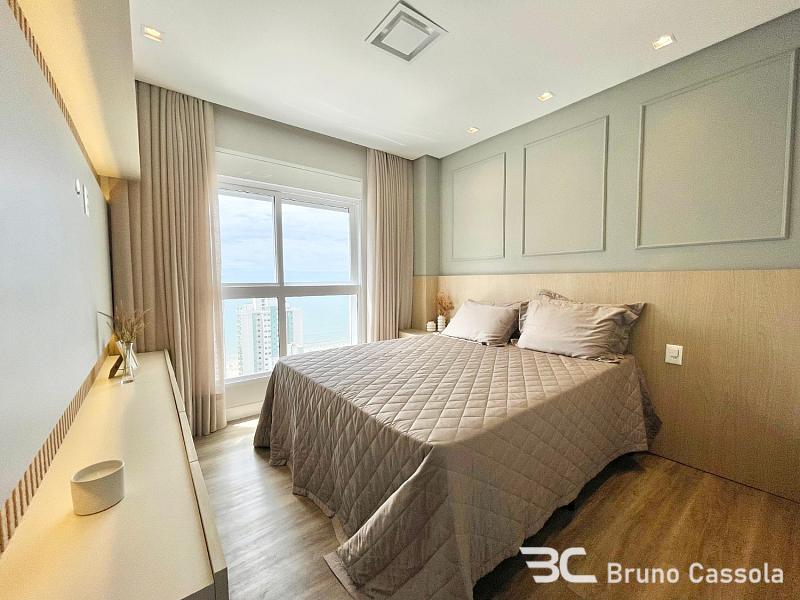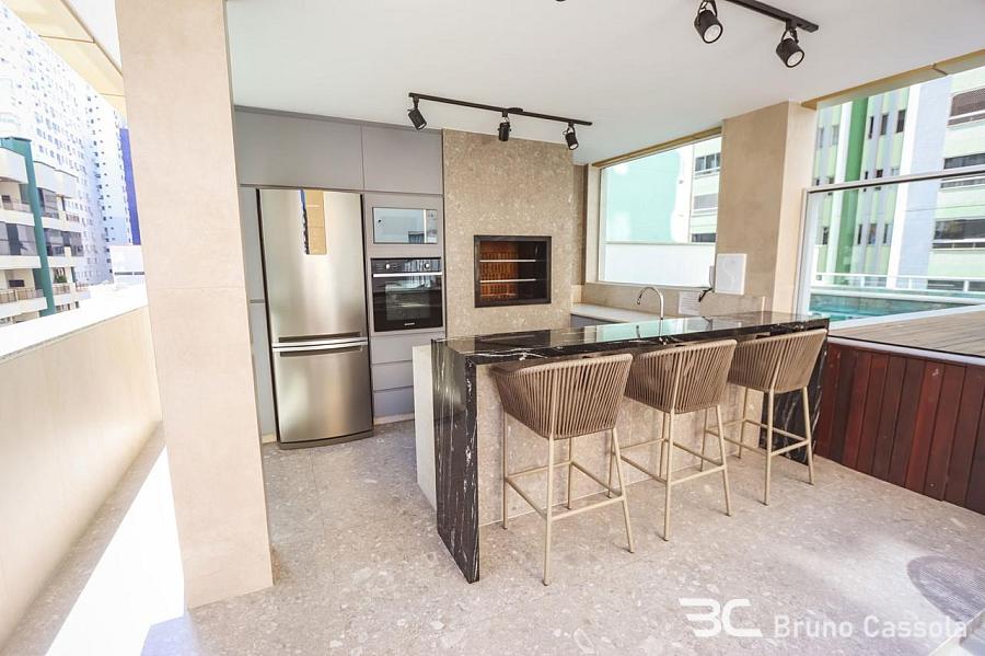 Apartamento a venda, com 3 suítes, 2 vagas, 118m², no Edifício Palazzo Del Sole, pronto para morar, nunca habitado, andar alto, com vista mar, e churrasqueira a carvão.