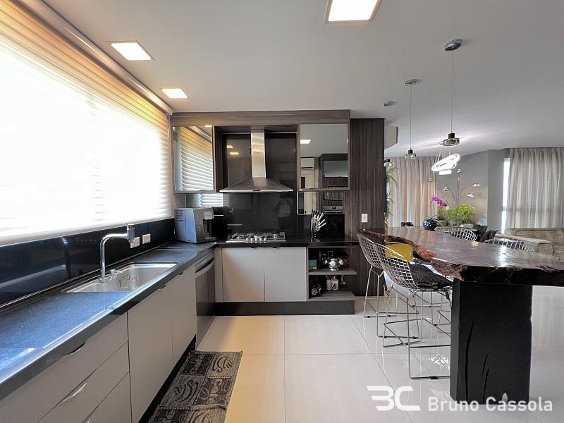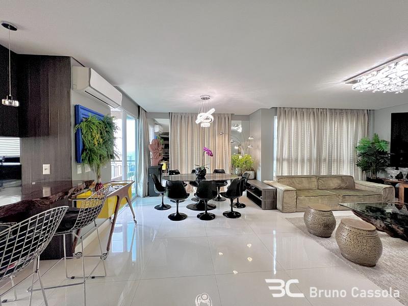 Apartamento andar alto com vista para o mar, 3 suítes sendo uma master com closet e hidromassagem, 161 m² privativos, sacada com churrasqueira à carvão, mobiliado e decorado. Planta otimizada e janelas amplas que favorecem a iluminação e ventilação.