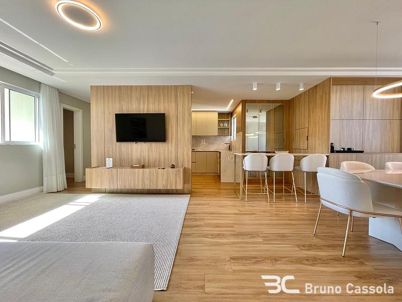 Este apartamento de alto padrão oferece 122 m² de área privativa, 03 dormitórios, 01 suíte e 02 demi-suítes, 02 vagas privativas de estacionamento. Aqui estão os detalhes: