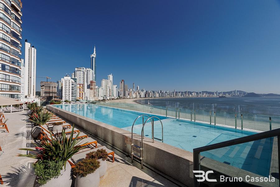Apartamento raro com 230 m² privativos, (Final 01 -Lado Norte) contendo 4 suítes + dependência, sendo 1 suíte master com closet de frente para o mar, amplo living integrado com sala de estar, jantar, cozinha americana e espaço gourmet com churrasqueira a carvão, 4 vagas de garagem. Ambientes amplos, arejados, com excelente incidência de luz solar e janelas do piso ao teto que oferecem uma vista panorâmica e exclusiva para toda a orla de Balneário Camboriú. Área de lazer com 2 pavimentos e estrutura completa, incluindo uma piscina com borda infinita, de frente para o mar. Localização nobre, na Avenida Atlântica, Barra Sul - Balneário Camboriú.