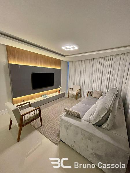 Apartamento 3 suítes mobiliado contendo 128 m² privativos, 2 vagas de garagem, imóvel amplo, ambientes integrados, alto padrão de acabamentos e localização nobre no centro de Balneário Camboriú.