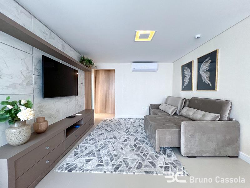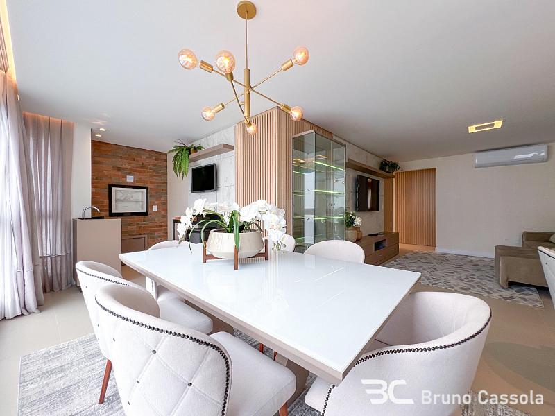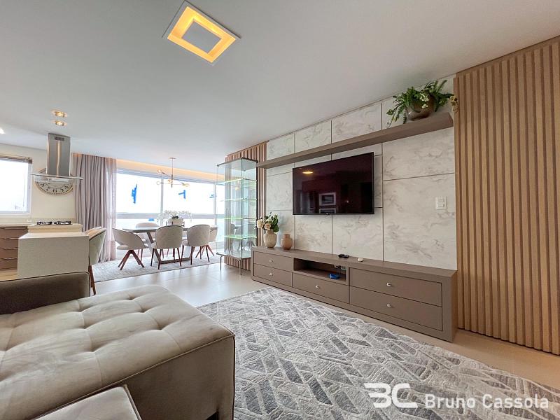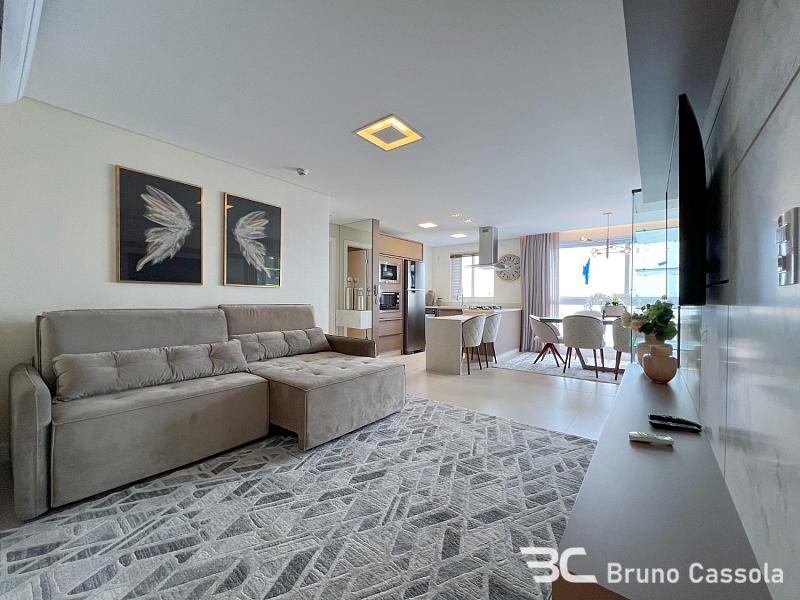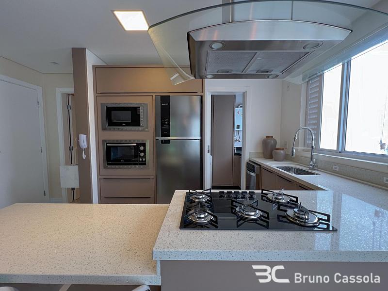 Apartamento com 103 m² de área privativa, 03 dormitórios (sendo 01 suíte), sacada integrada com churrasqueira a carvão, finamente mobiliado e decorado. Possui 02 vagas de garagem, excelente ventilação e iluminação natural.