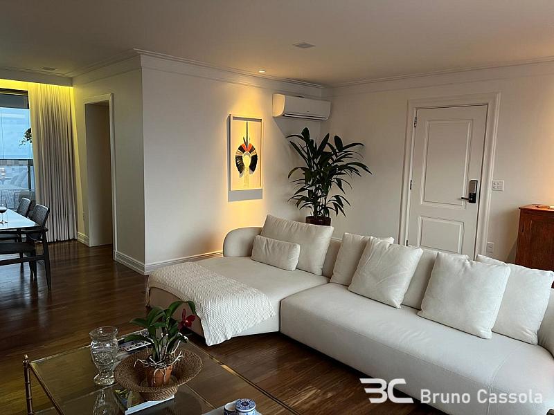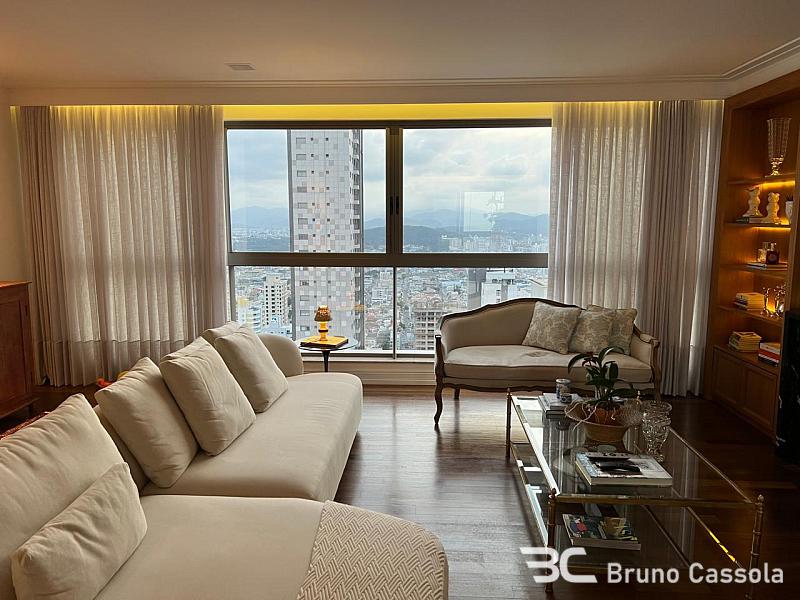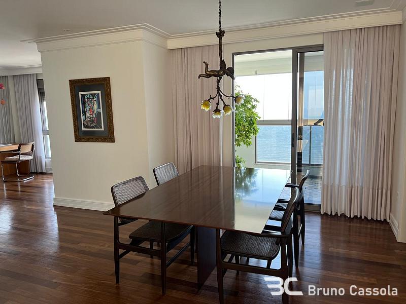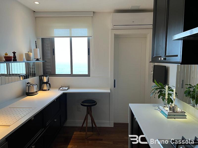 PRIVILÈGE RESIDENCE - EMBRAED: Apartamento de alto padrão mobiliado e decorado, quadra mar, andar alto com vista para toda a praia, 160 m² privativos, 3 suítes, home office, living integrado com sala de estar, sala de jantar e sacada com vista para o mar, cozinha, área de serviço, 3 vagas de garagem.