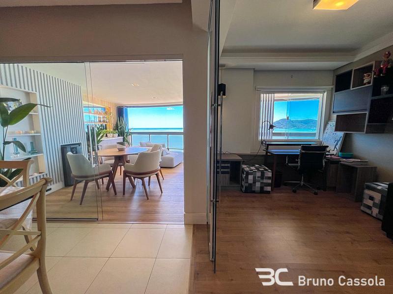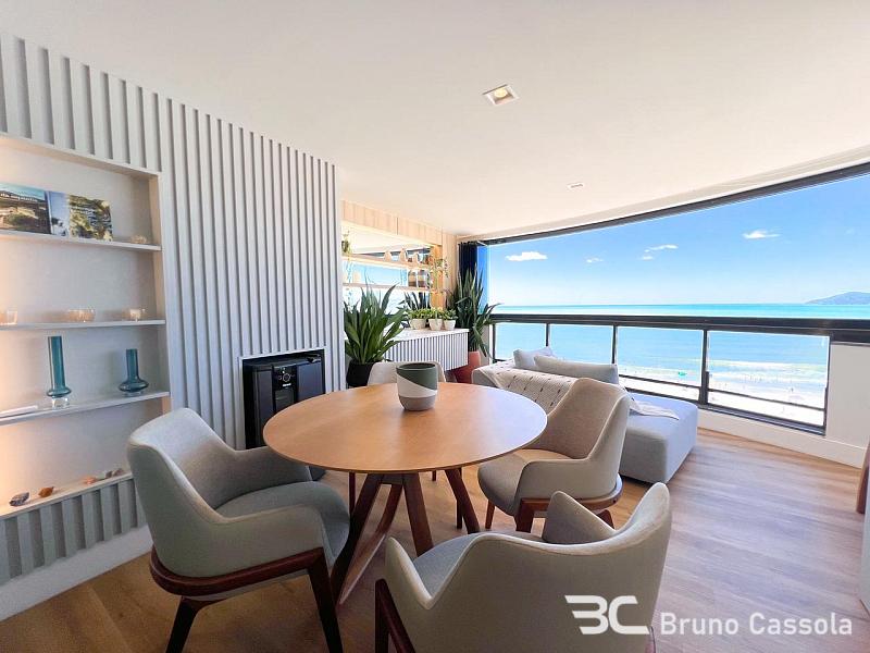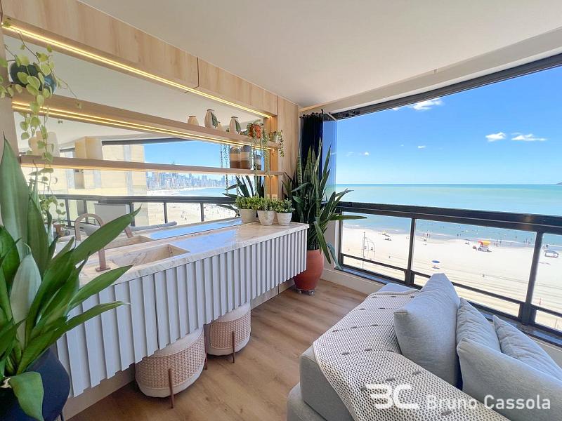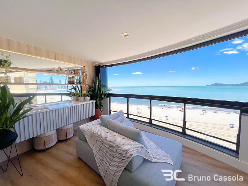 Apartamento frente mar na região norte de Balneário Camboriú, com 192 m² de área privativa. Conta com 03 dormitórios, ampla dependência de serviço, 02 vagas de garagem, totalmente mobiliado e decorado. Possui uma sacada espaçosa com churrasqueira a carvão e uma vista panorâmica deslumbrante da Praia Central. O edifício oferece ainda uma área de lazer completa.