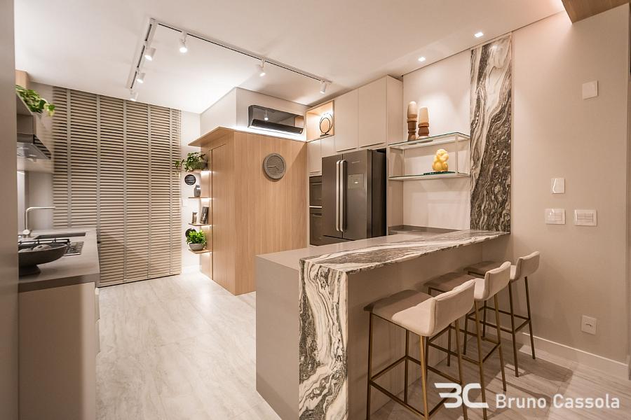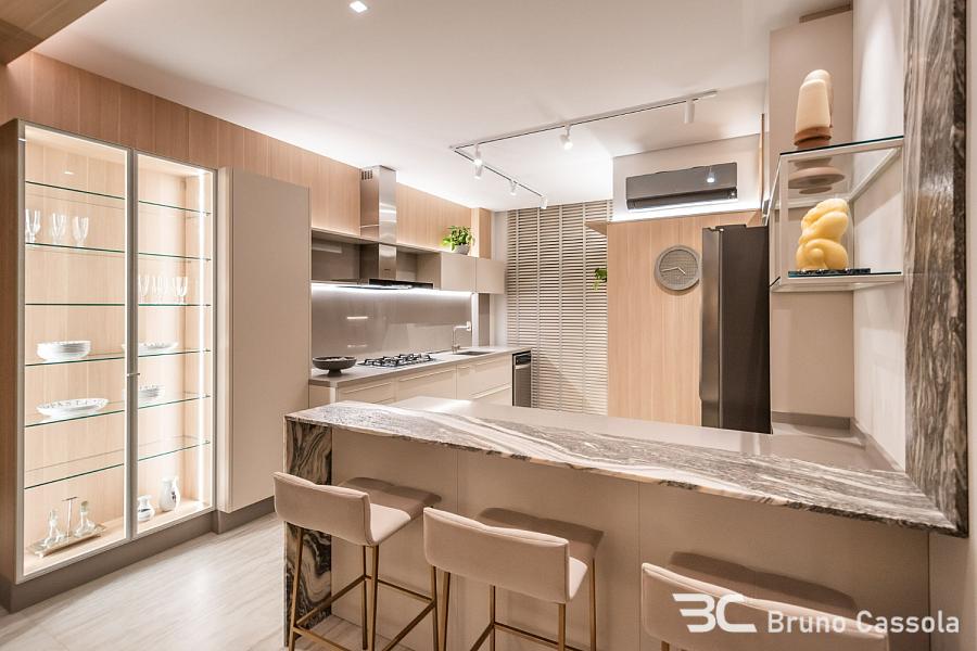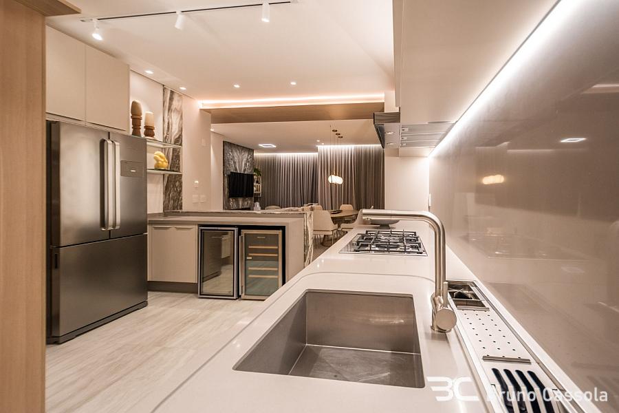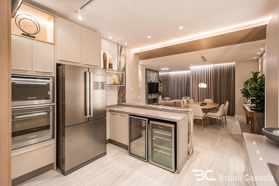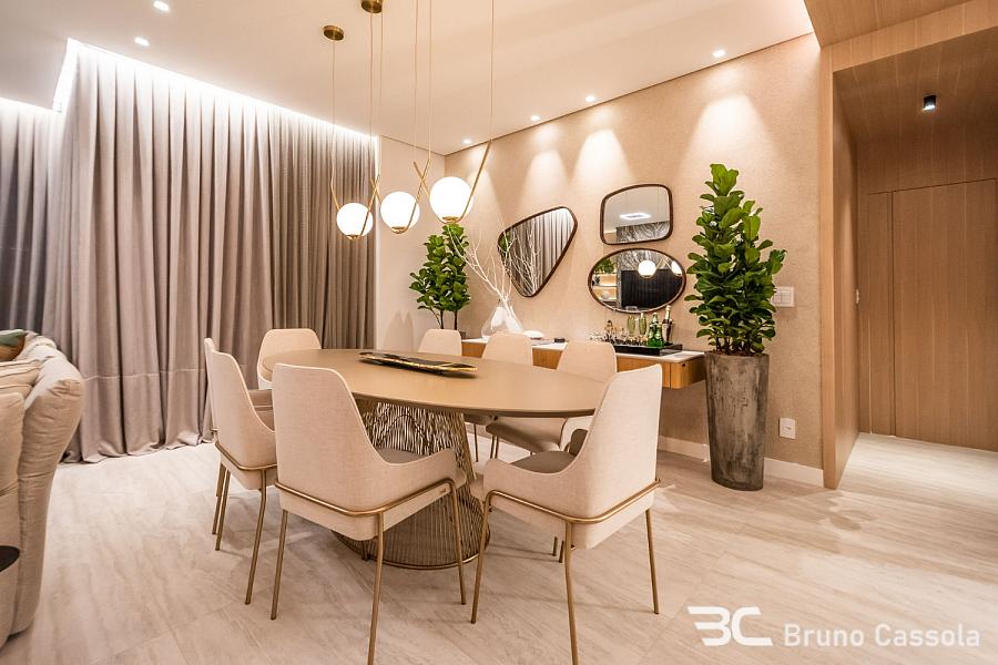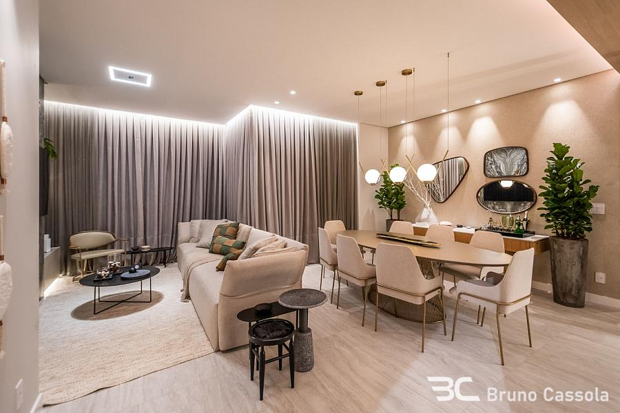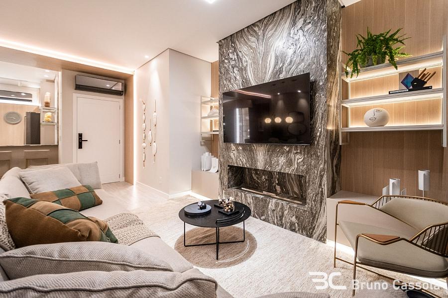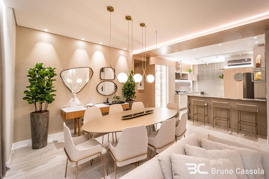 Apartamento diferenciado de alto padrão, finamente mobiliado e decorado, assinado pela arquiteta Karen Schauffert com móveis Sierra e Florense.