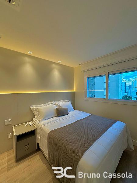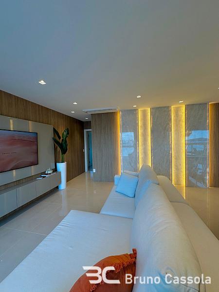 Apartamento à venda no Edifício Santé Residence, padrão Embraed, com quatro suítes, mobiliado e decorado. A unidade conta com sacada aberta equipada com churrasqueira a carvão e oferece vista definitiva para o mar e para a roda gigante. O imóvel está localizado na Barra Norte, região de característica residencial em Balneário Camboriú, Santa Catarina.