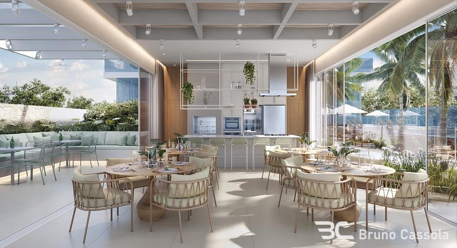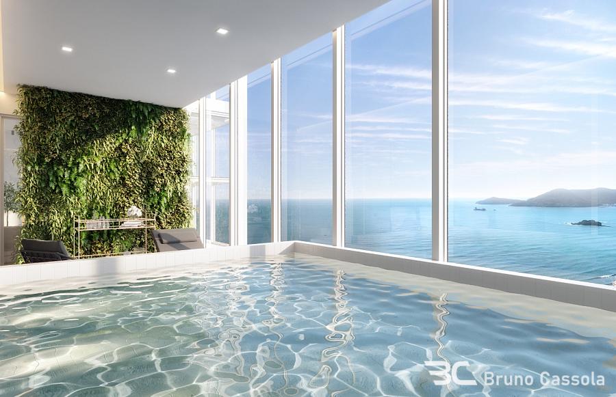 Ampla infraestrutura de lazer com 2.300 m² de área e mais de 18 ambientes, além de um rooftop no 59º pavimento, com vista panorâmica para o mar e para toda a cidade.