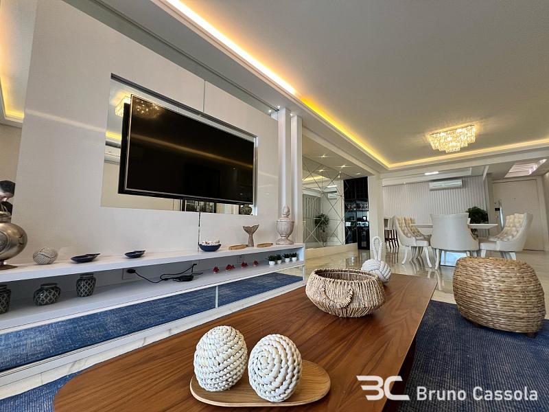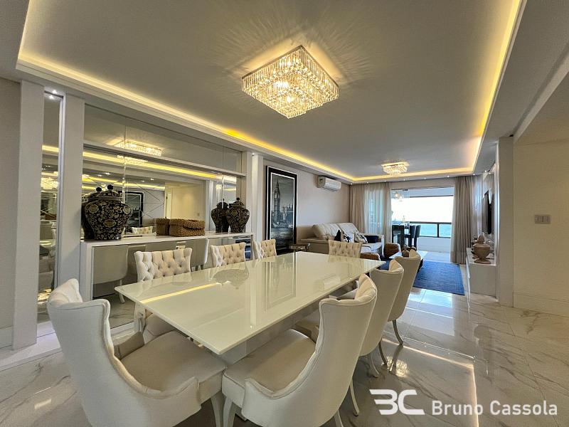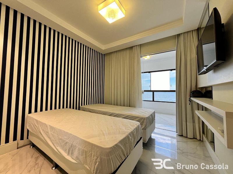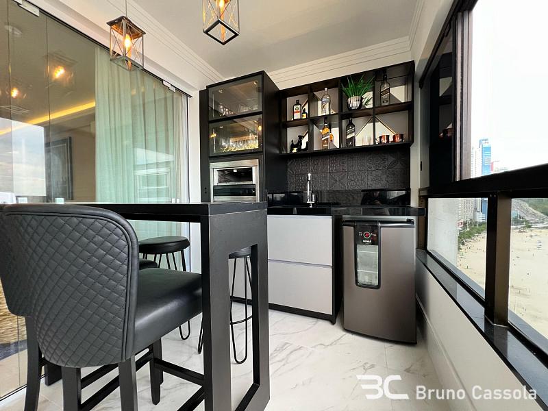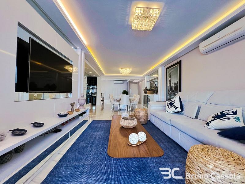 Este apartamento a venda tem 3 dormitórios, sendo 2 suítes espaçosas, com destaque para uma das suítes que oferece vista mar. A sacada é ampla, com churrasqueira e vista total da orla. O imóvel se encontra mobiliado e decorado, pronto para morar, com tudo incluso. Conta com 2 vagas de garagem privativas.