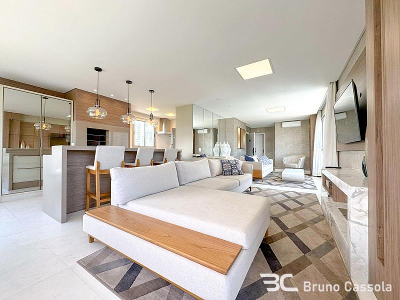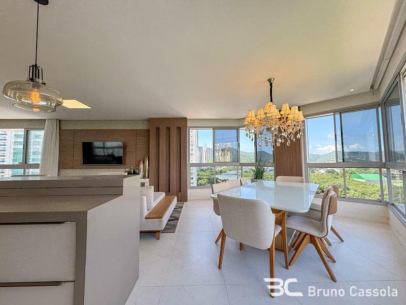 Apartamento quadra mar, finamente mobiliado e decorado com 4 suítes, vista para o mar e para o pôr do sol, 155 m² privativos, amplo living integrado, espaço gourmet e churrasqueira a carvão, 3 vagas de garagem. Exclusividade de apenas 1 apartamento por andar, trazendo privacidade e vistas abertas, com janelas amplas.