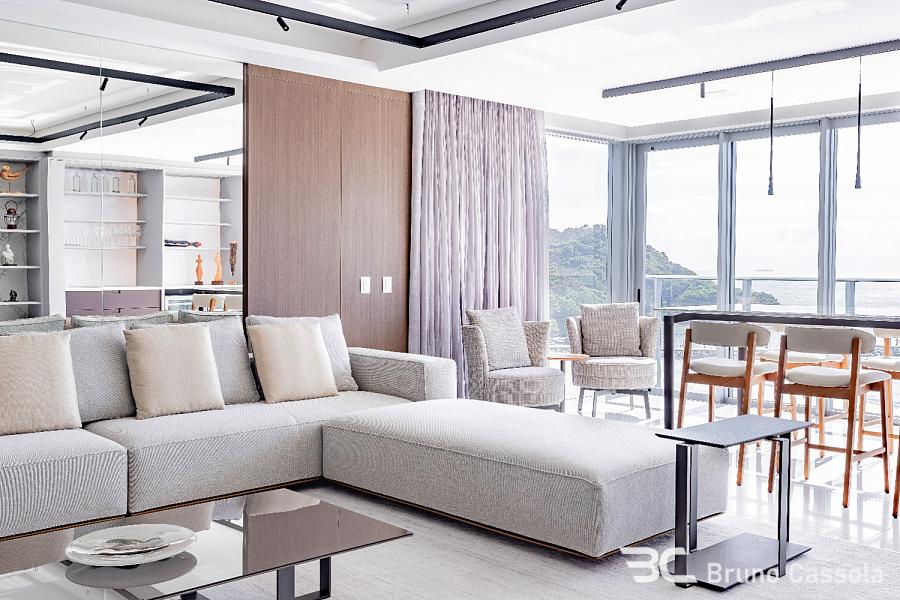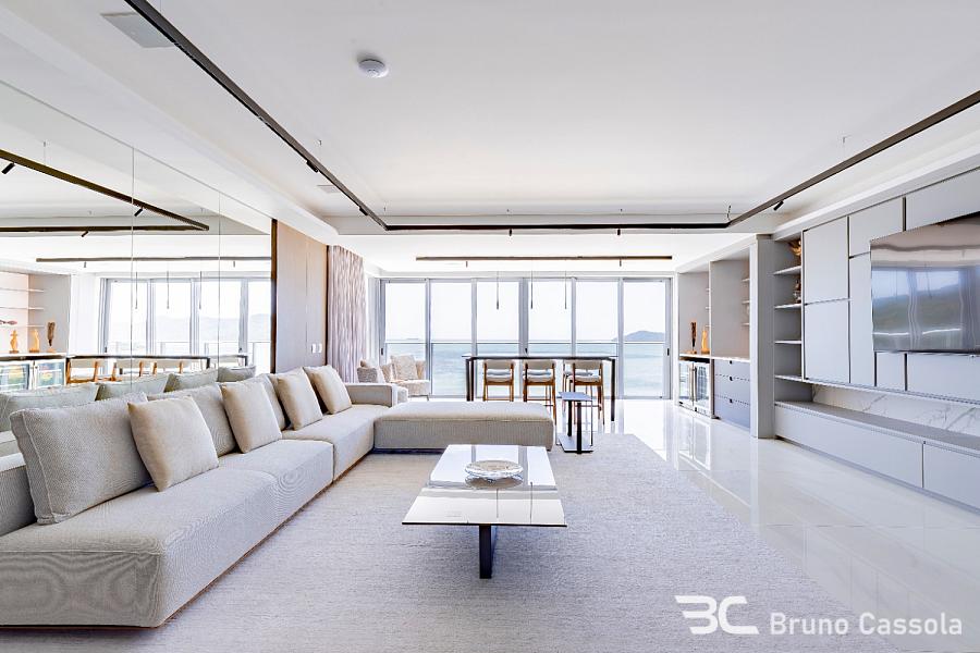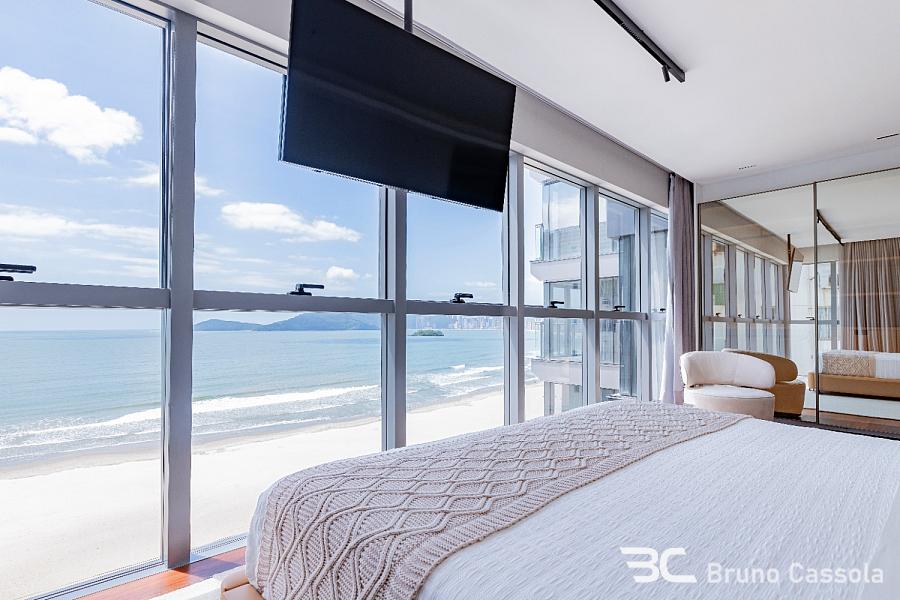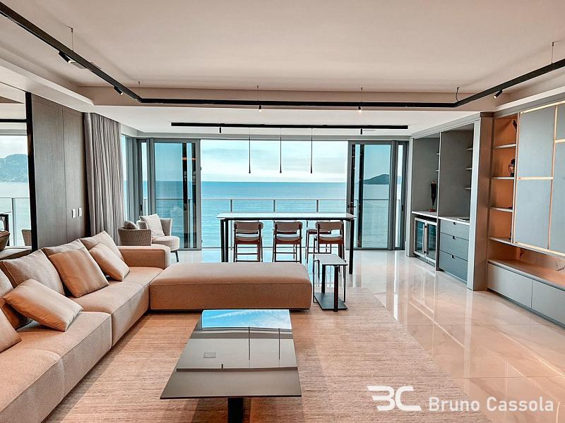 Apartamento frente mar de altíssimo padrão, 4 suítes sendo duas de frente para o mar, finamente decorado com móveis e decoração novos, 264 m² privativos, amplo living, cozinha com churrasqueira a carvão e sacada balcony.
